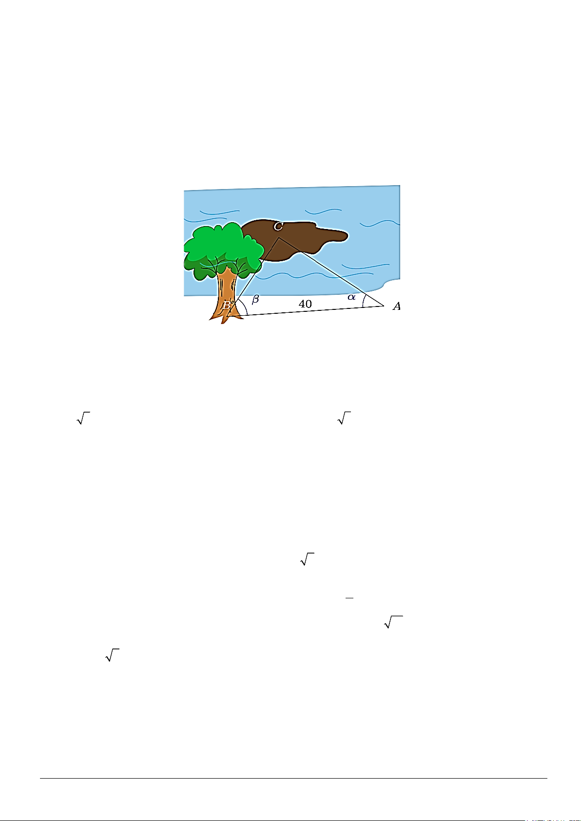 (trên bờ hồ) cách ngôi nhà 40m và gọi vị trí ngôi nhà là điểm A, gốc cây là điểm B, hòn đảo là điểm C, người ta đo được