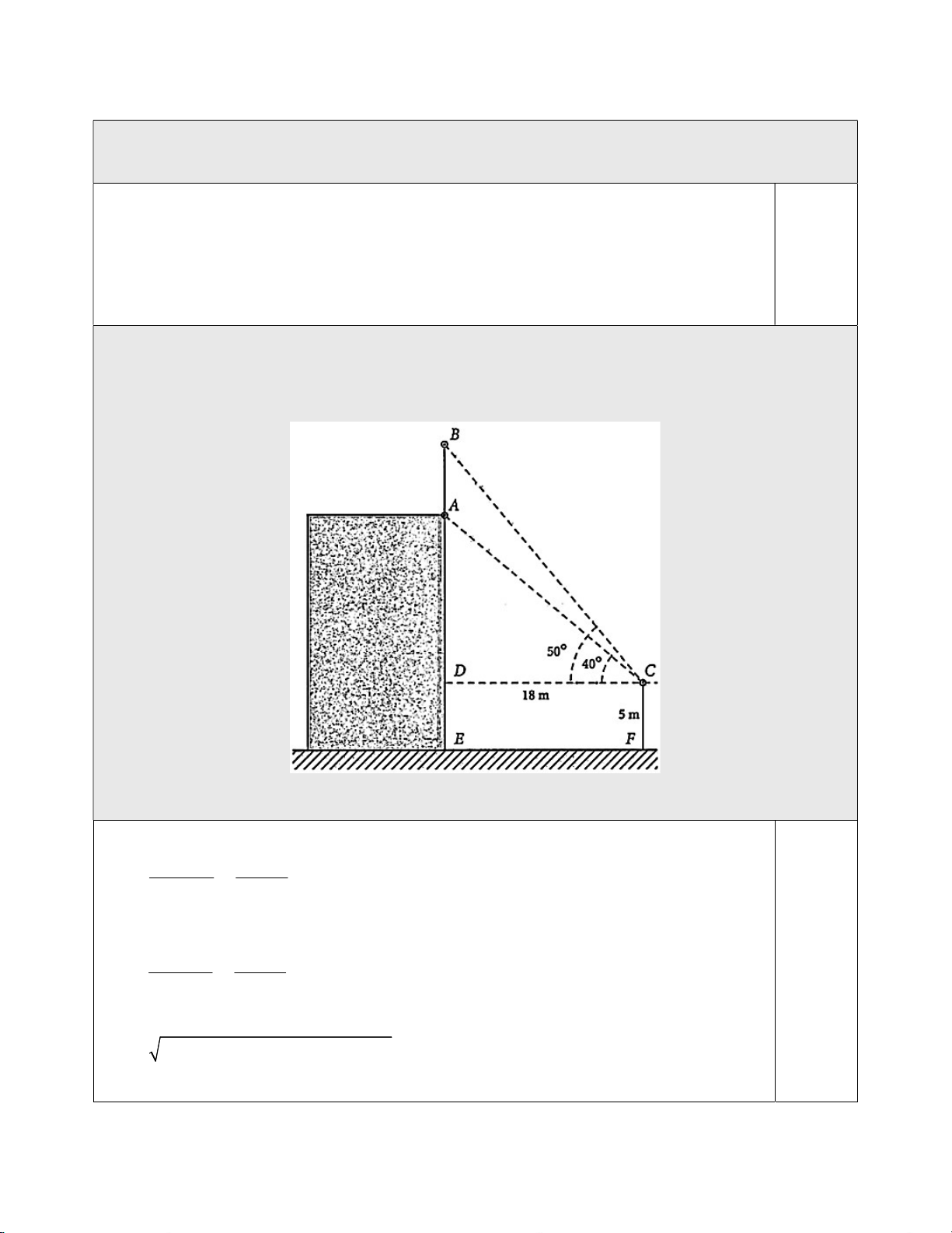 50 , khoảng cách từ chân toà nhà đến vị trí quan sát là 18m . Tính chiều