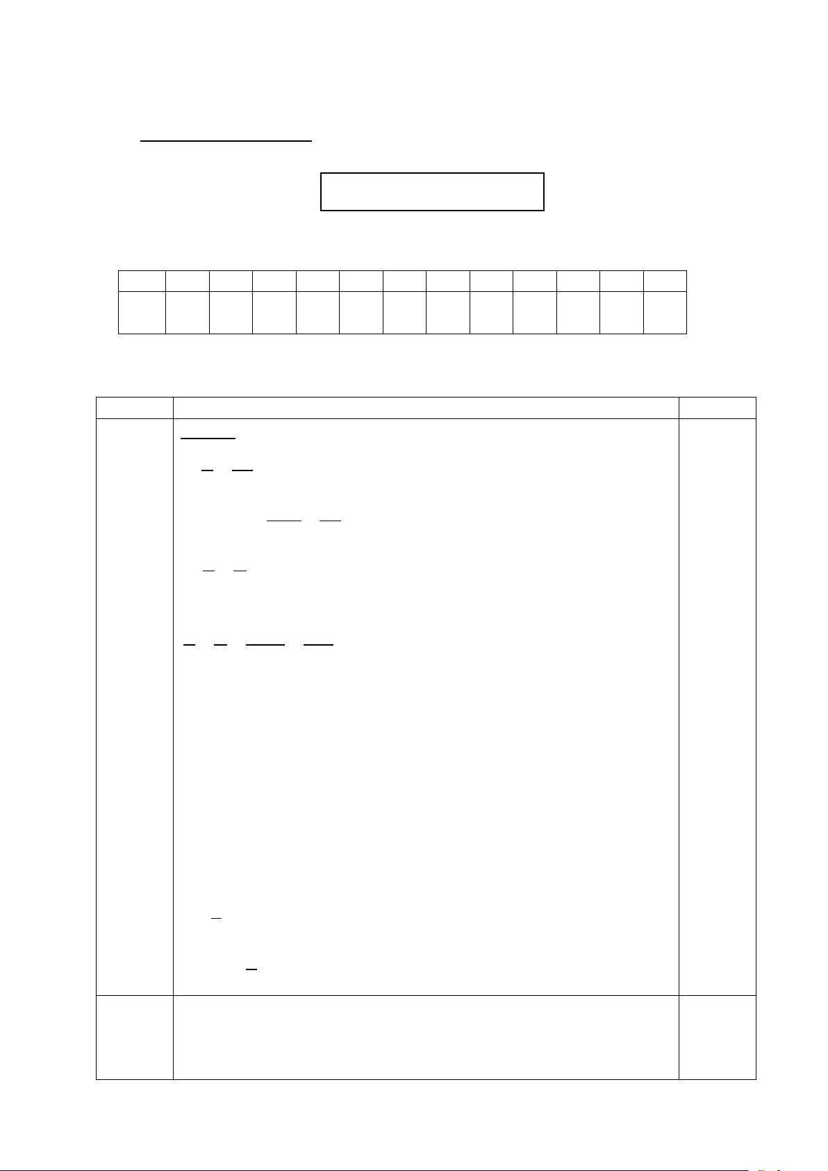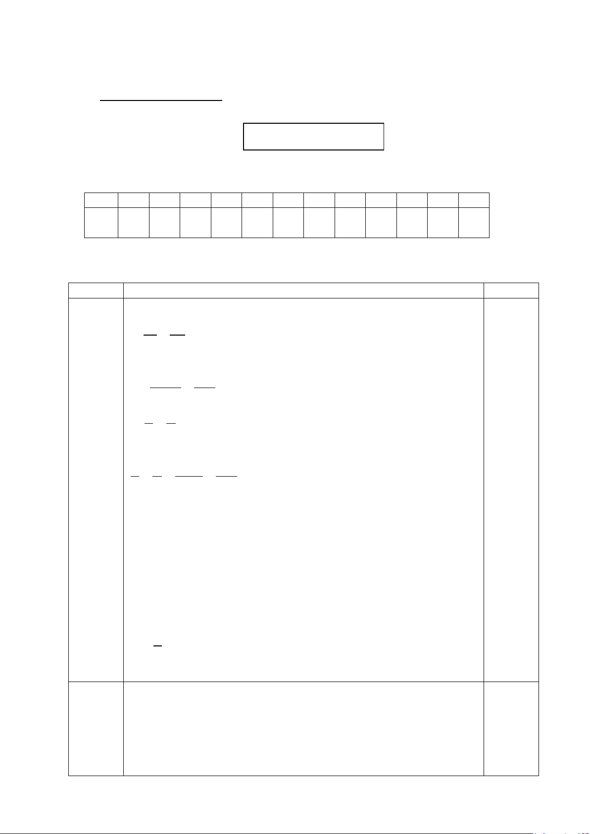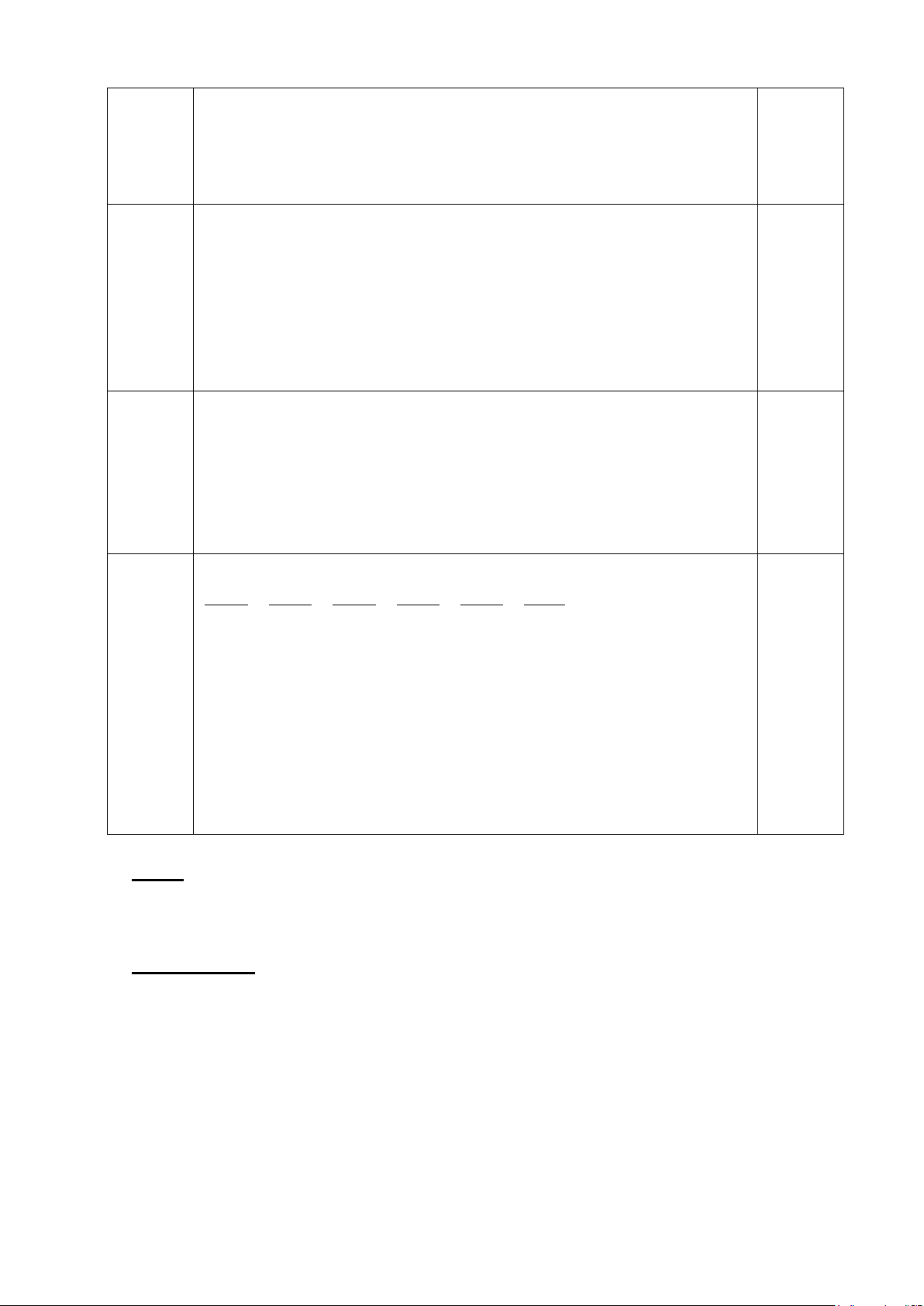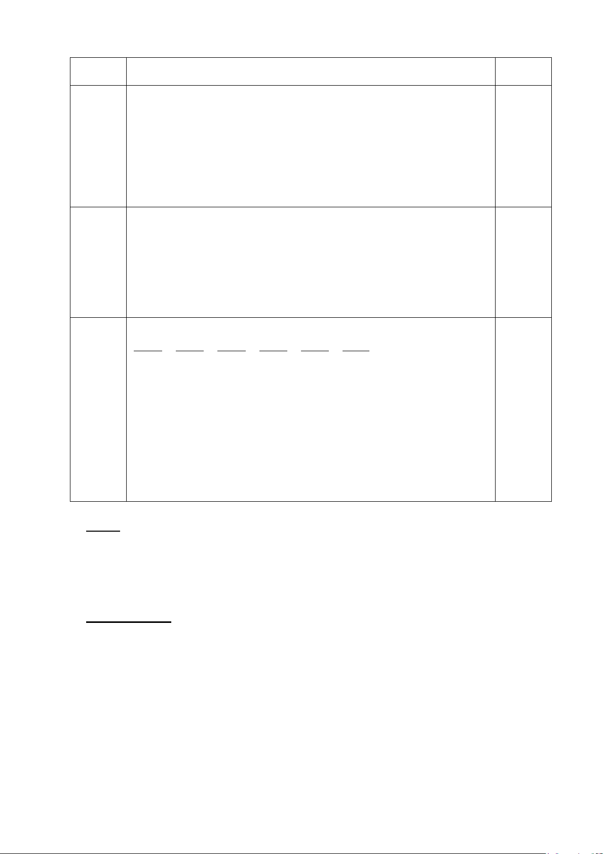 Chú ý: Mọi cách giải khác đúng vẫn cho điểm tối đa của phần đó, câu đó.