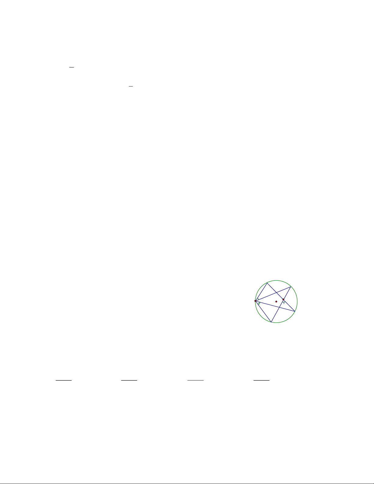 Câu 19. Góc nội tiếp chắn nửa đường tròn là A. góc nhọn B. góc vuông C. góc tù D. góc bẹt
