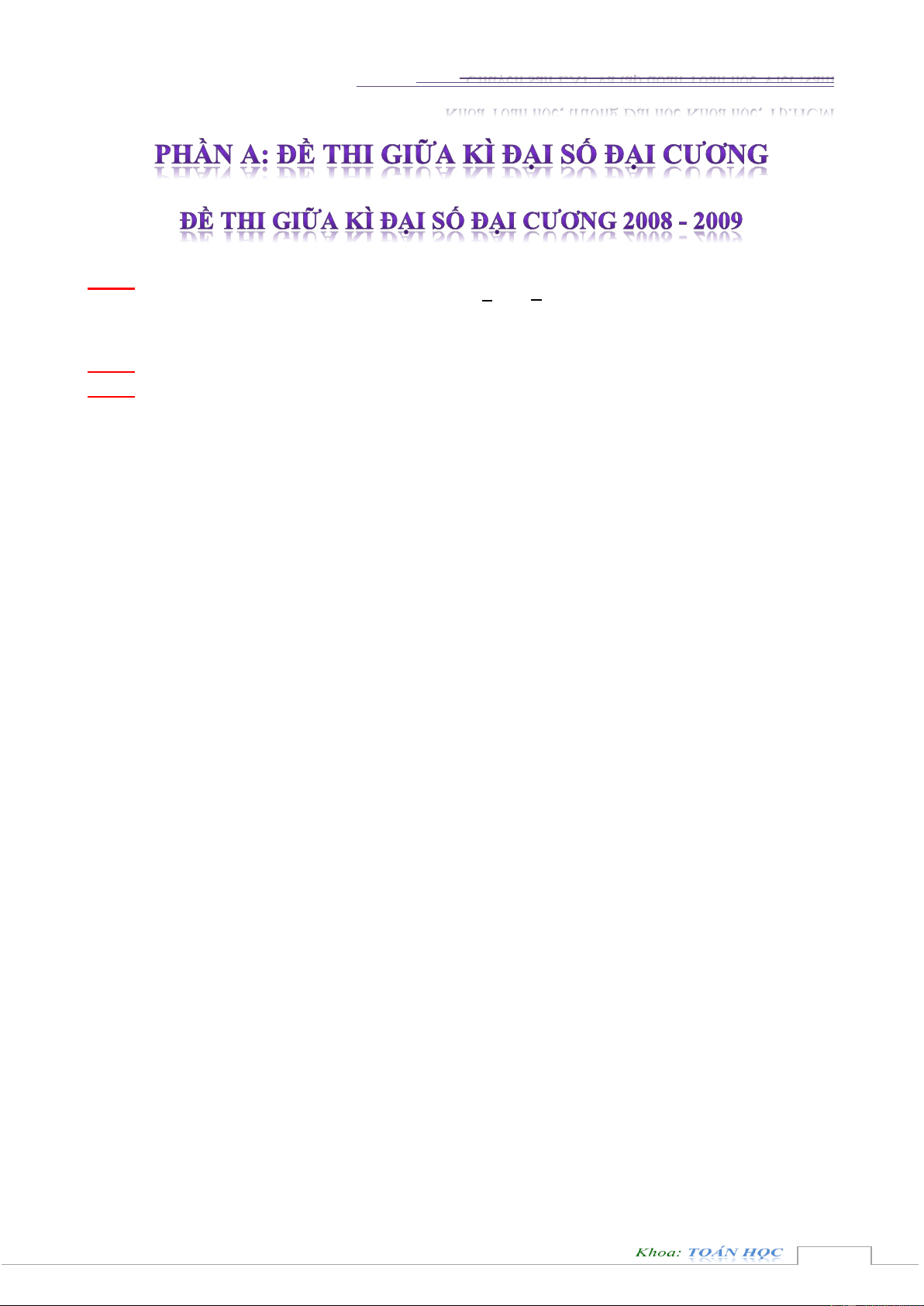 Câu 5: Trong trường số phức ℂ xét các trường con