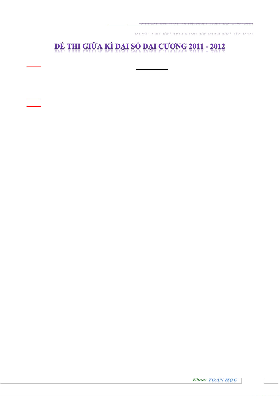 Câu 1: Cho 𝑓 ∶ 𝐺 → 𝐺′ và 𝑔 ∶ 𝐺′ → 𝐺 là đồng cấu nhóm. Đặt