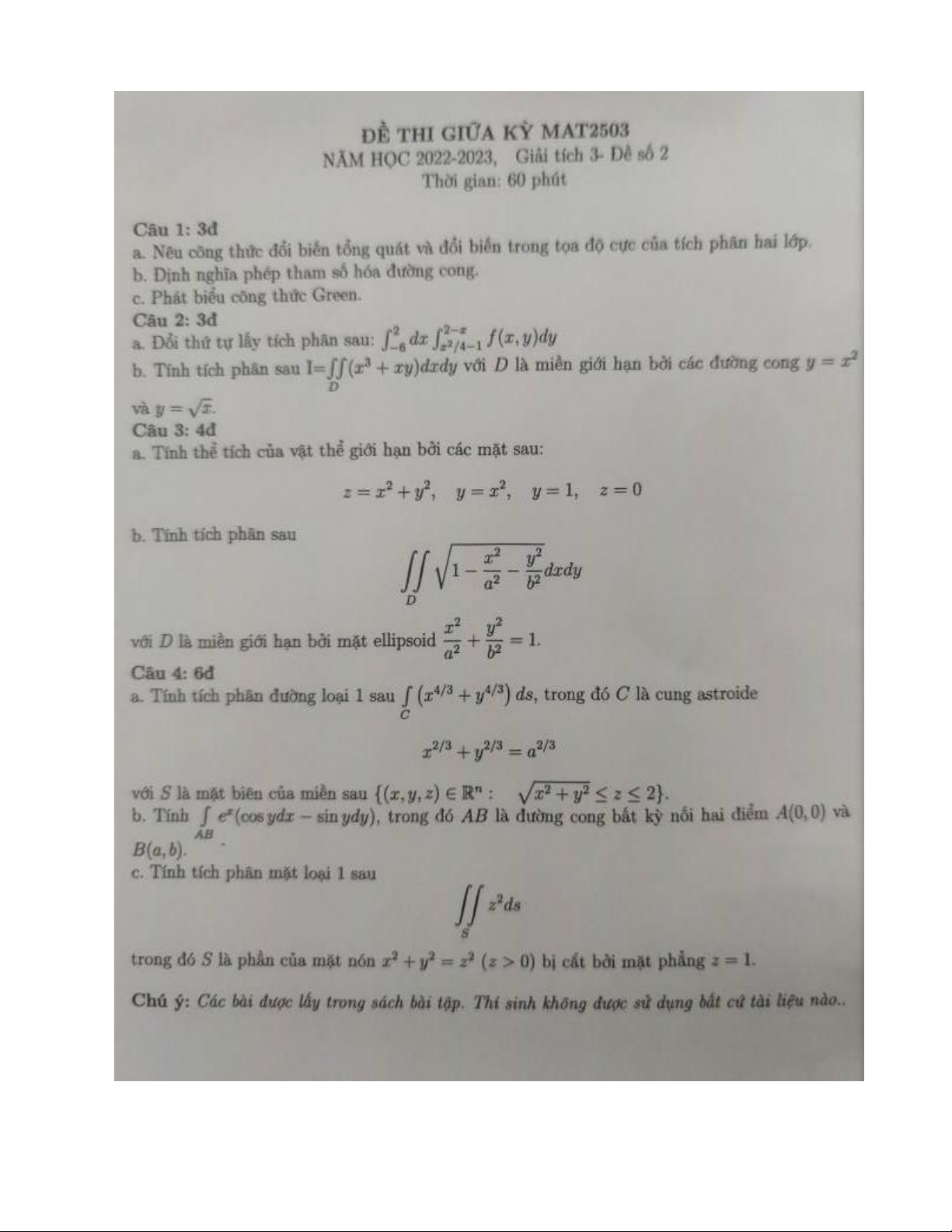 Đề thi giữa kì môn Giải tích 3 năm học 2025-2026 - trường đại học Khoa học tự nhiên – Đại học quốc gia hà nội