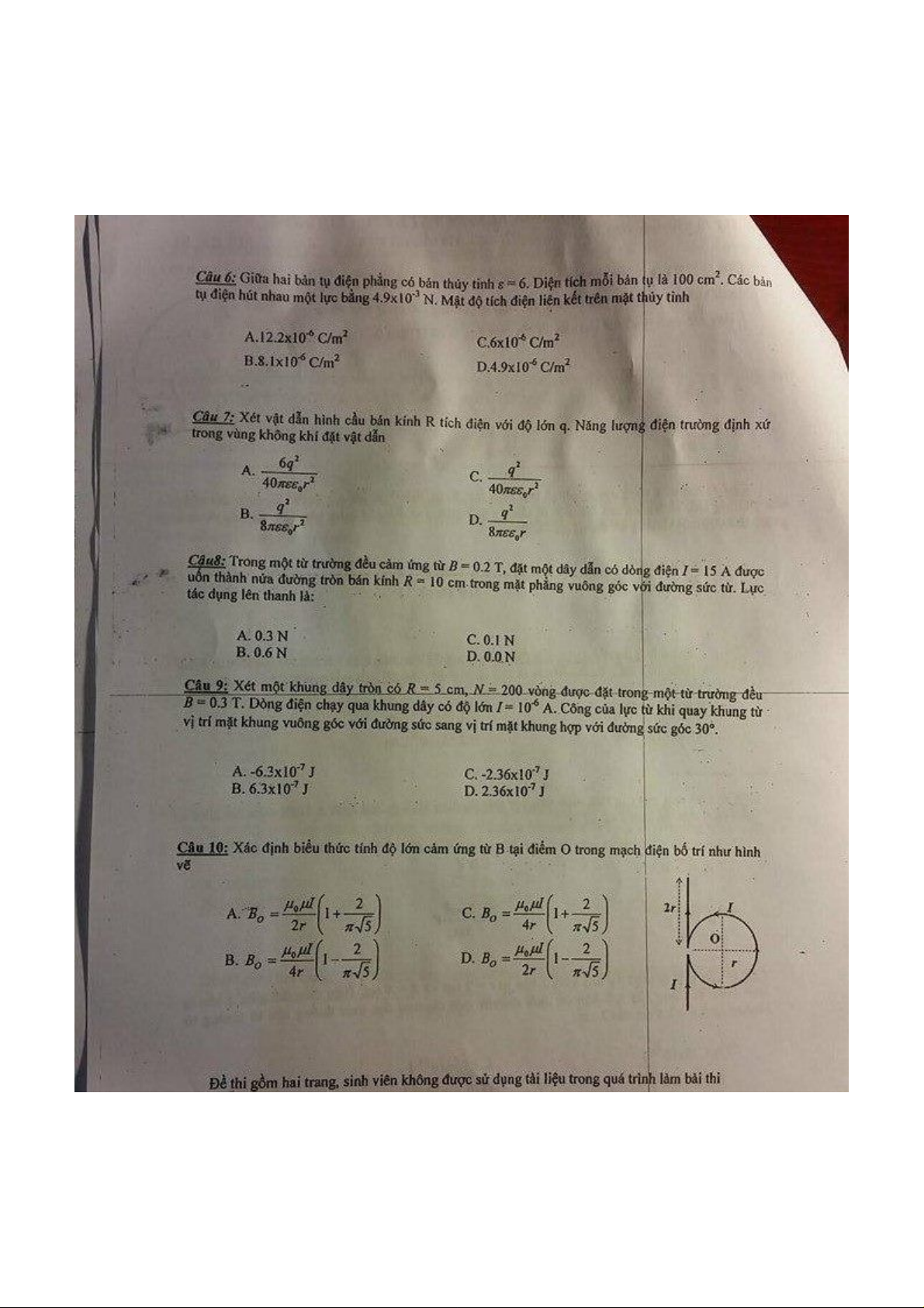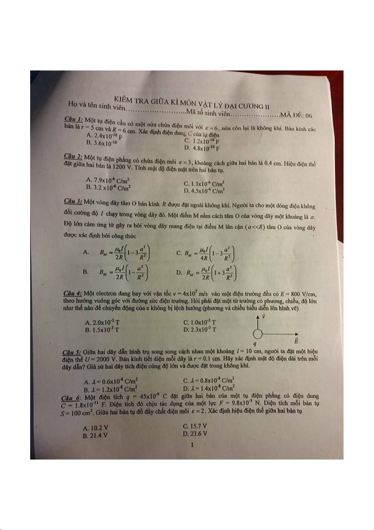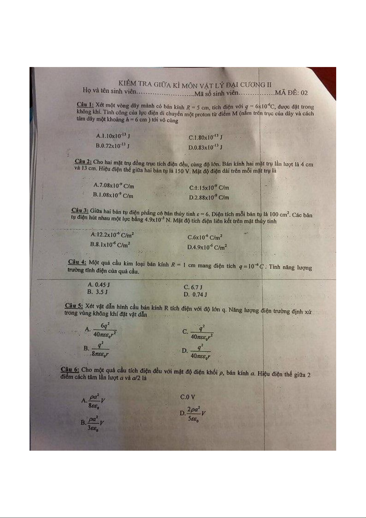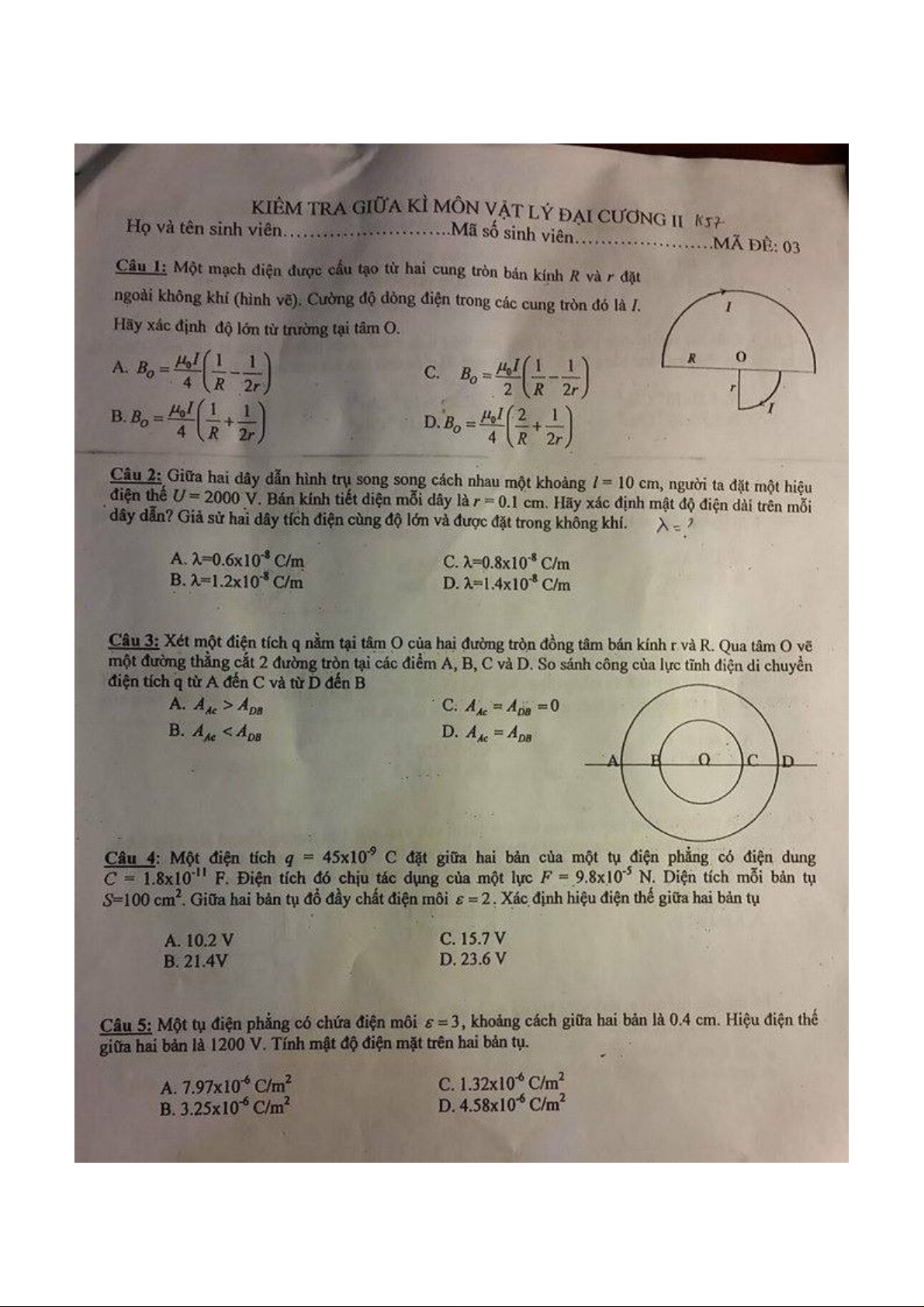 Đề thi giữa kì môn VLĐC 2| Môn VLĐC 2| Trường Đại học Bách Khoa Hà Nội