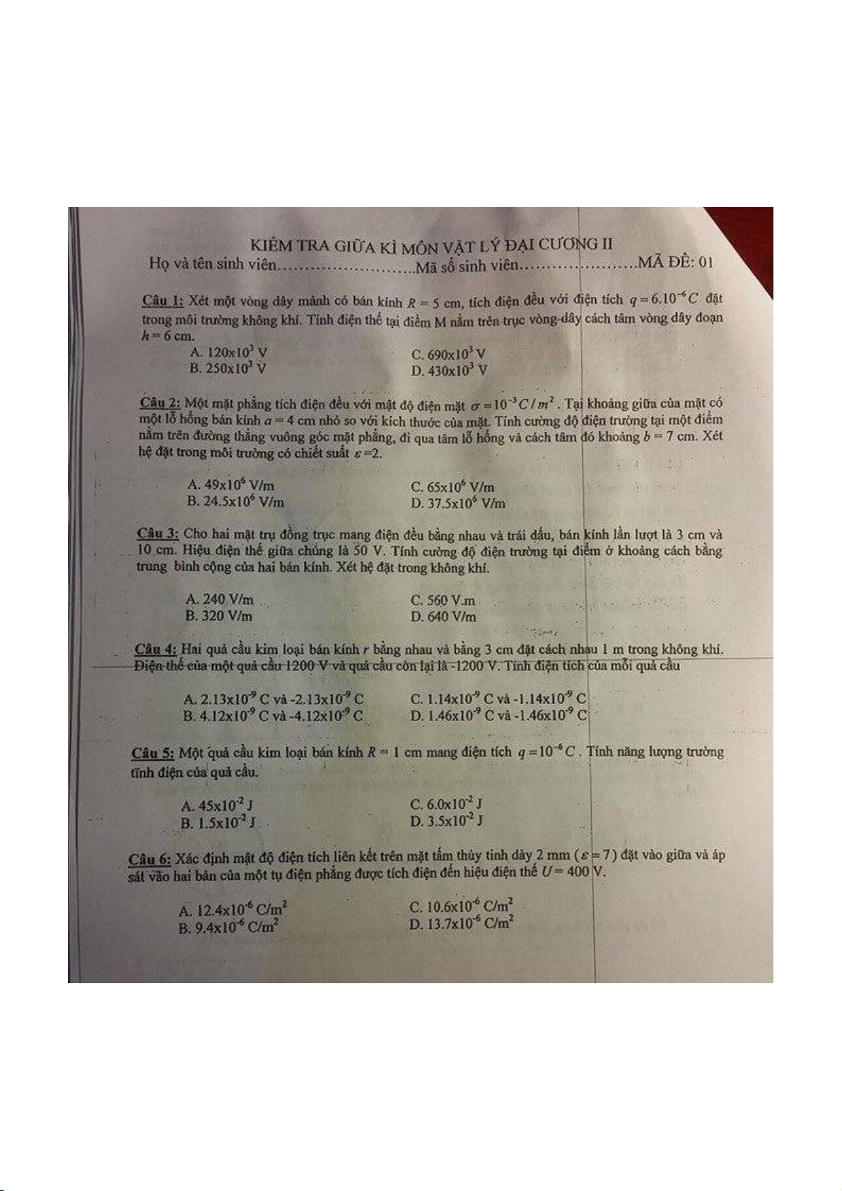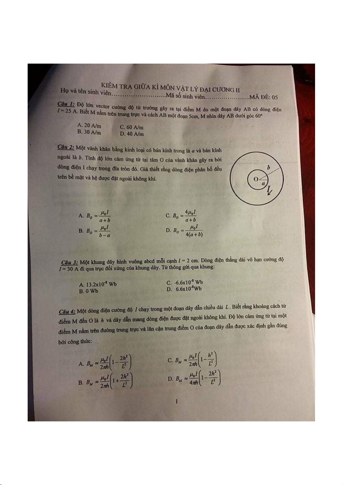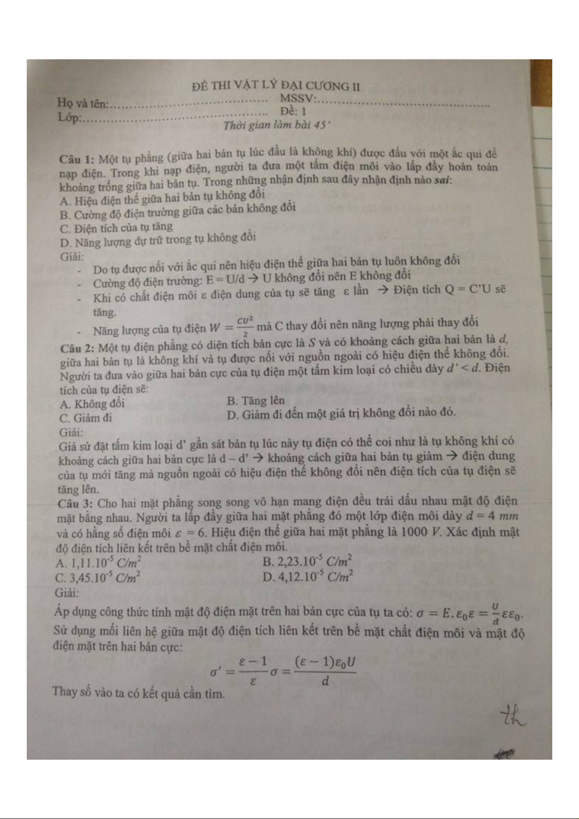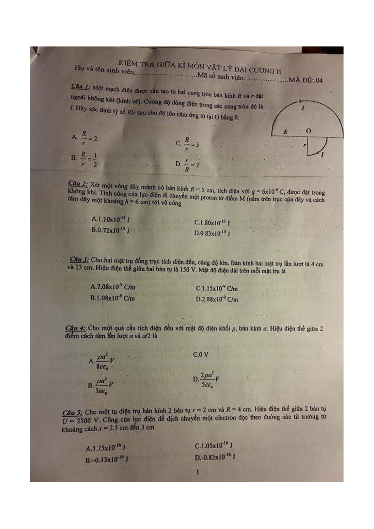 Đề thi giữa kì môn VLĐC 2| Môn VLĐC 2| Trường Đại học Bách Khoa Hà Nội