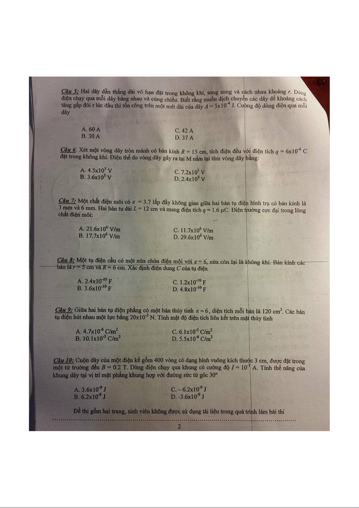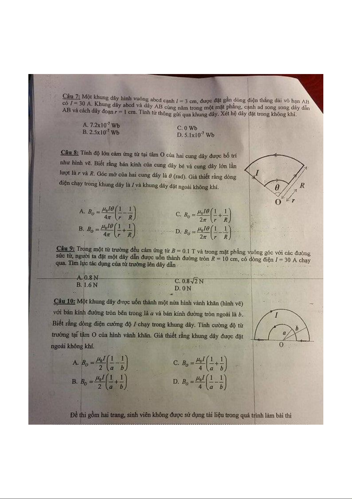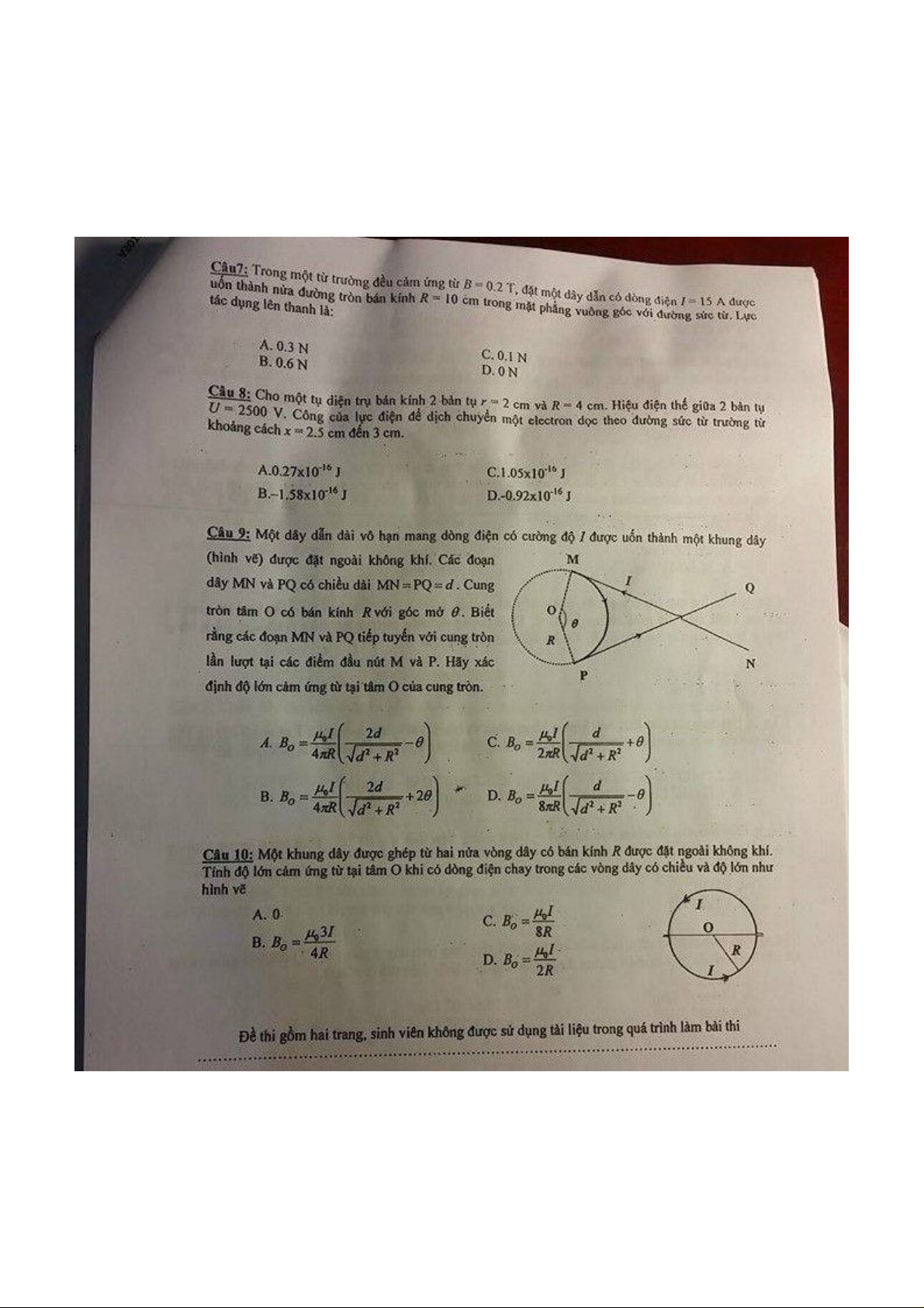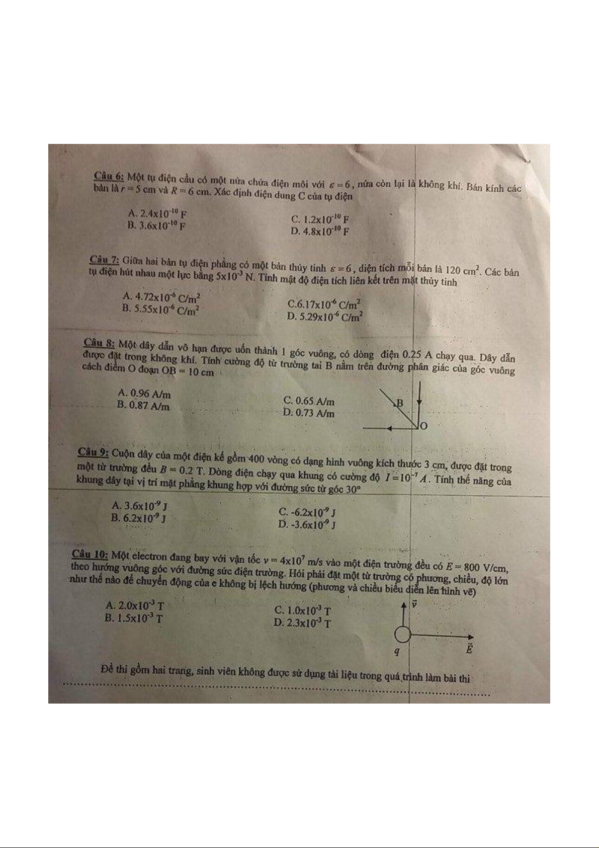 Đề thi giữa kì môn VLĐC 2| Môn VLĐC 2| Trường Đại học Bách Khoa Hà Nội