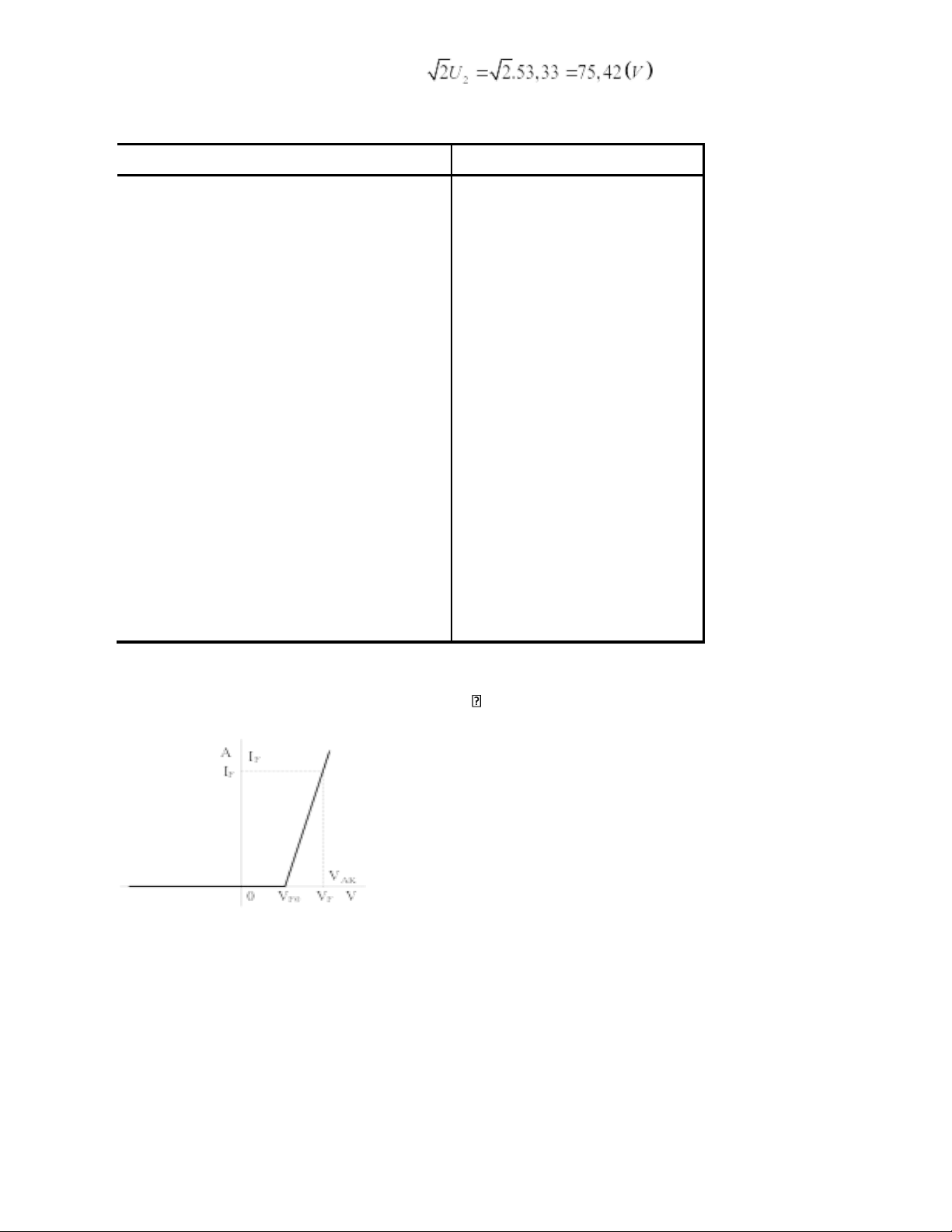 Các thông số cơ bản của sơ đồ: Ud = 0,9U2 : U2=48/0,9=53,33 (V) Id=Ud/Rd=Pd/Ud Id=500/48=10,42 (A) Van bán dẫn: ID=Id/2; ID=10,42/2=5,21 (A) lOMoAR cPSD| 61548596