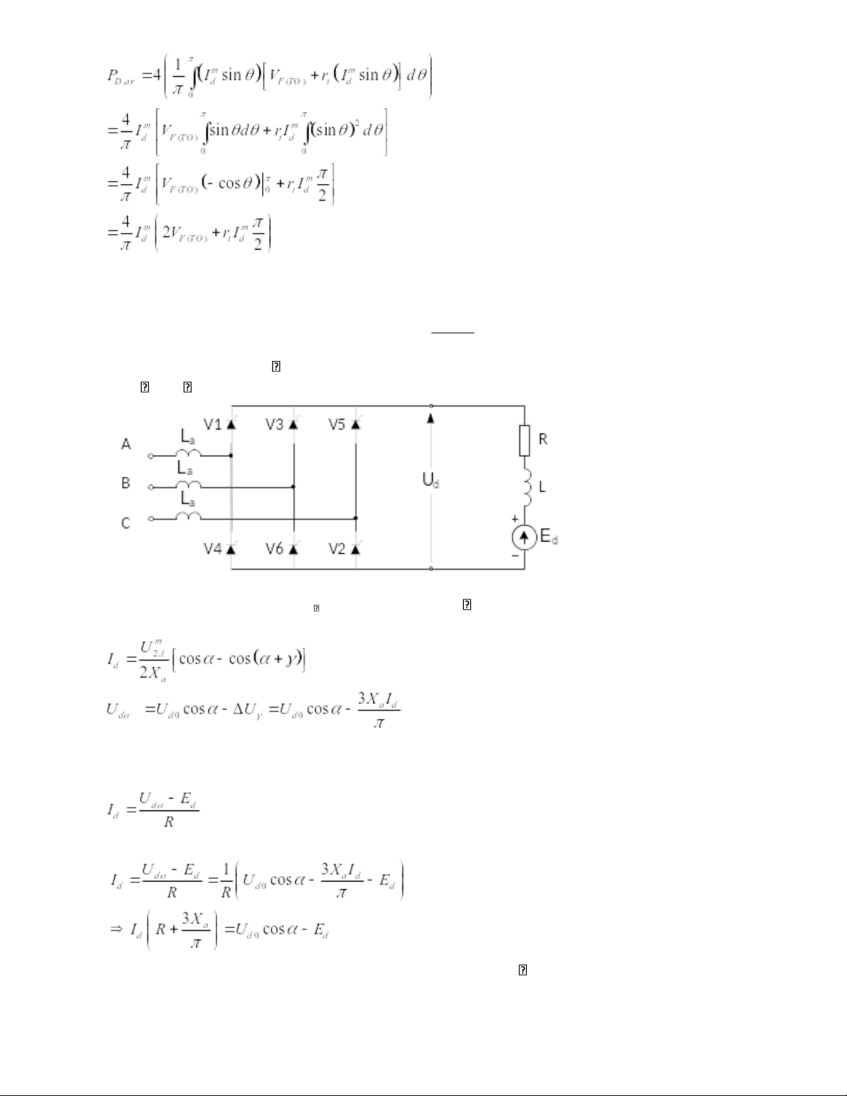 Id=(Udalpha-Ed)/A5 74.77559061 A alpha 30 degree U2,lm=sqrt(6)*U2 538.8877434 f 50 Hz cos(alpha+gamma) 0.648000874 alpha(rad) 0.523667 rad acos(B10) 0.865839597 gamma= 0.34217293 rad gamma(deg) 19.60252303 degree Ud,alpha=Ud0cos(al pha)- pi 3*Xa*Id/ Ud,alpha= 389.7307087 V