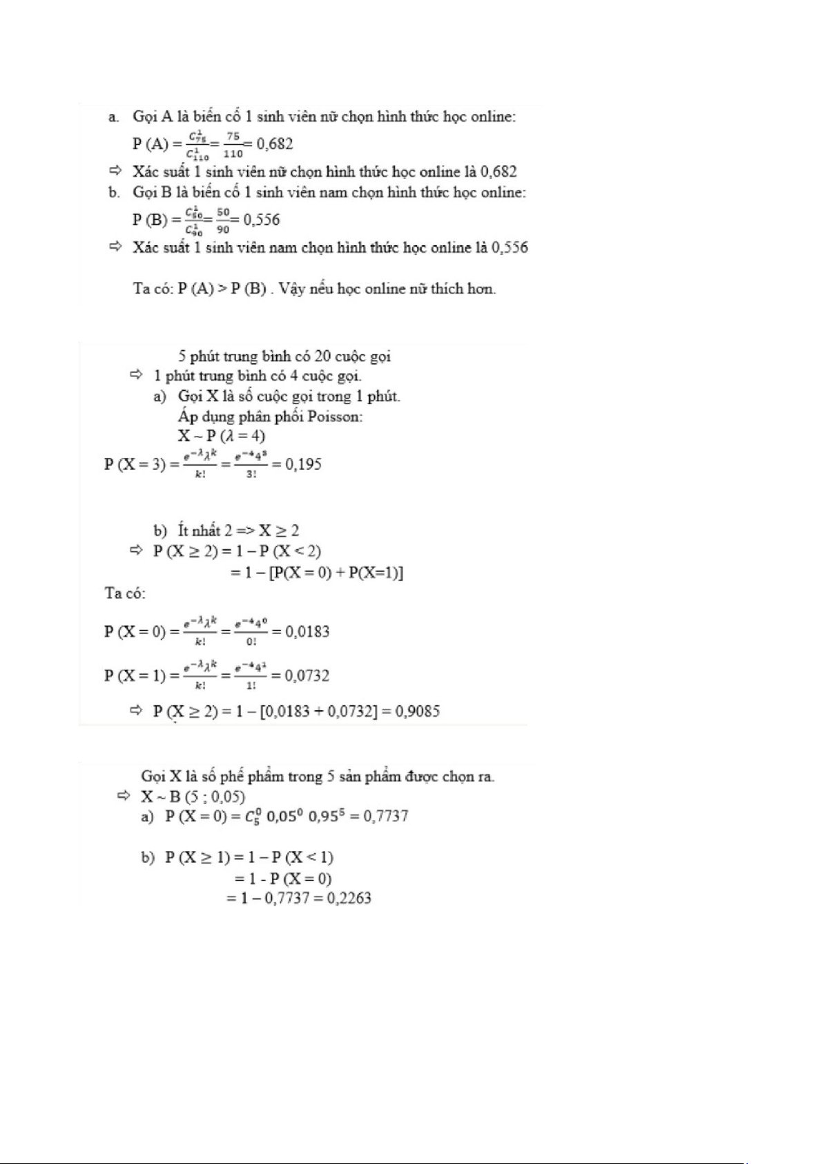 trong vòng 5p để thắc mắc về chương trình học. Giả sử các cuộc điện thoại gọi đến