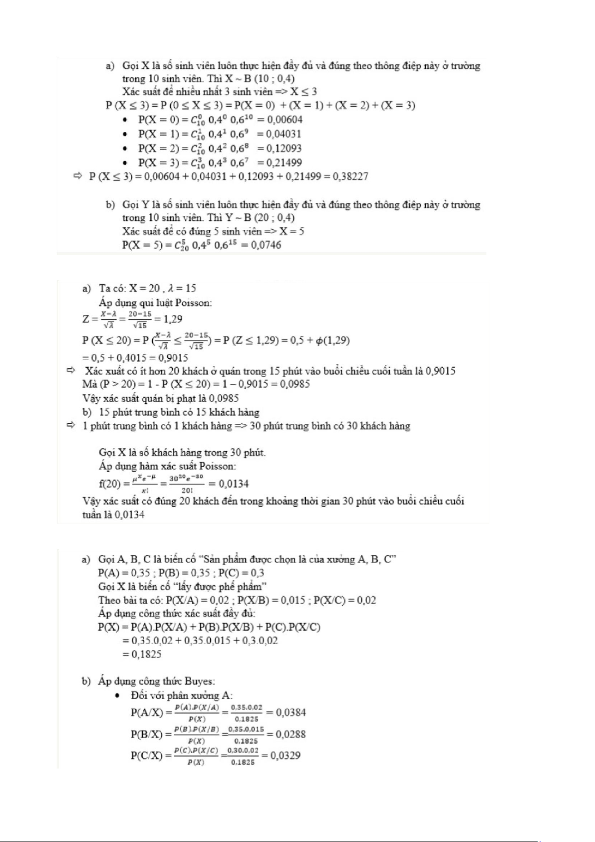 lệ phế phẩm của các phân xưởng A,B,C lần lượt là 2%; 1,5%; 2% a) Hãy tính tỷ lệ