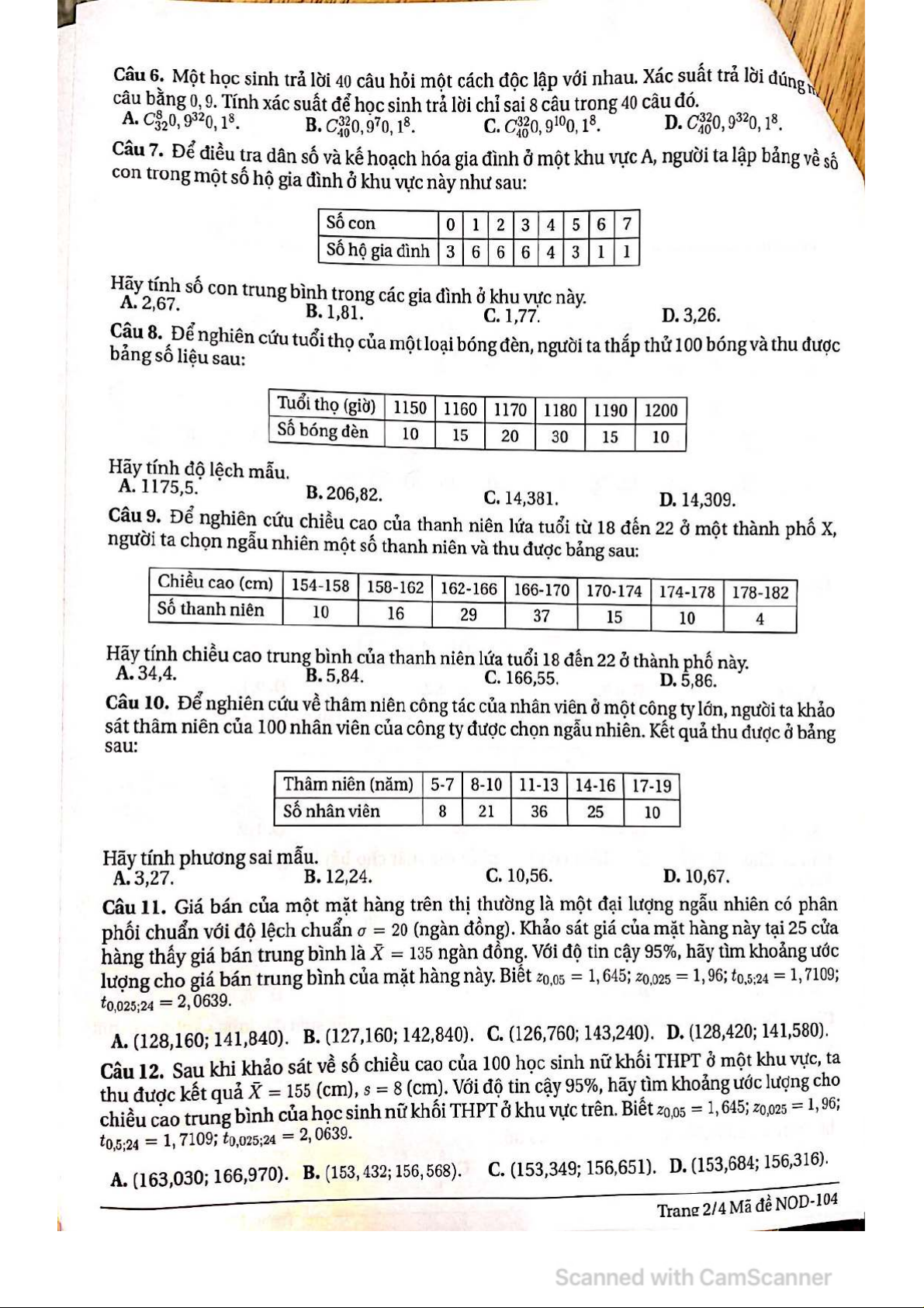 Câu hỏi ôn tập Thống kê xã hội học - Lý thuyết Xác suất | Đại học Sư Phạm Hà Nội