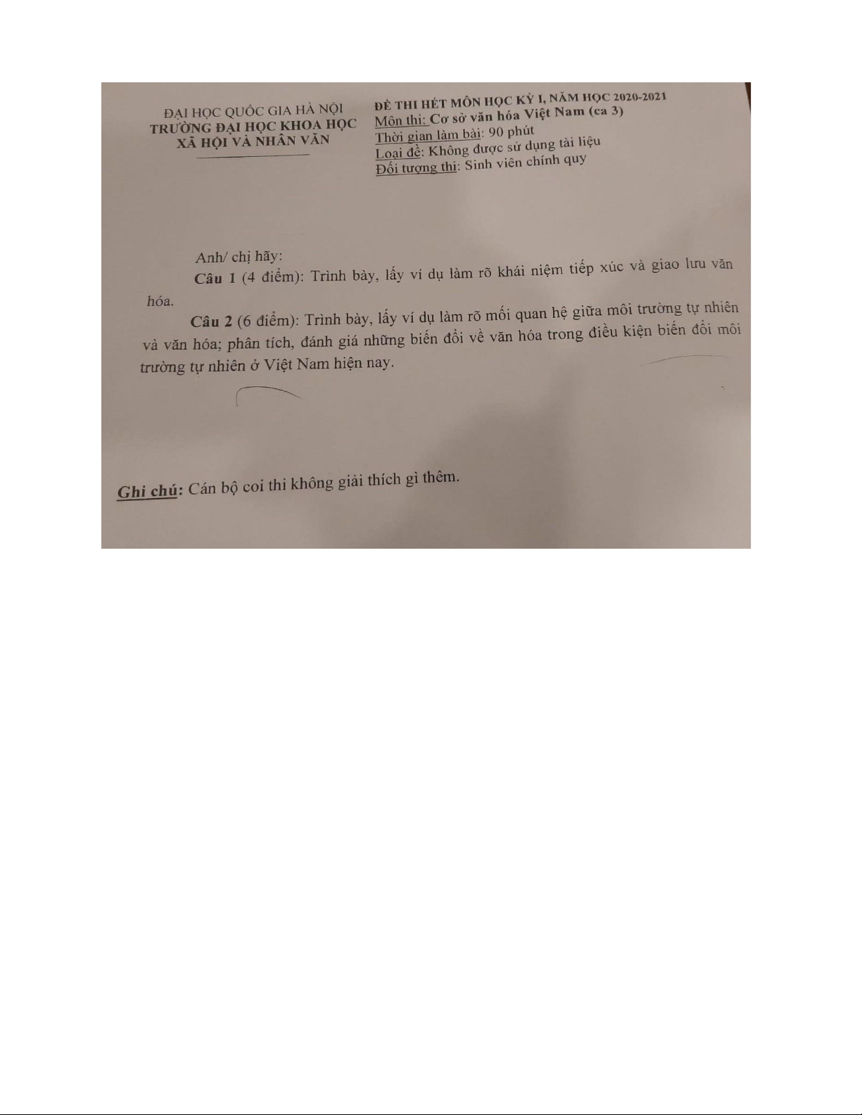 Đề thi hết môn Cơ sở văn hóa Việt Nam năm học 2025-2026 - trường đại học Khoa học xã hội và nhân văn – Đại học quốc gia hà nội.