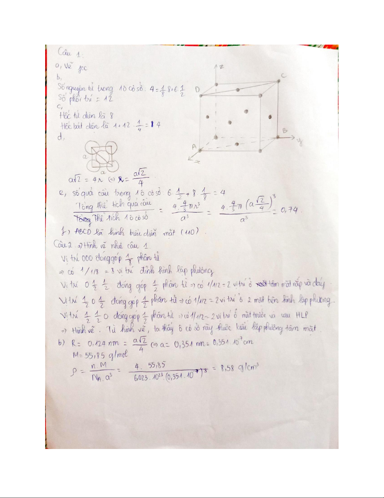 Bài tập chương 2: Các loại liên kết trong vật liệu | Cơ sở hóa học vật liệu | Trường Đại học Khoa học Tự nhiên, Đại học Quốc gia Hà Nội