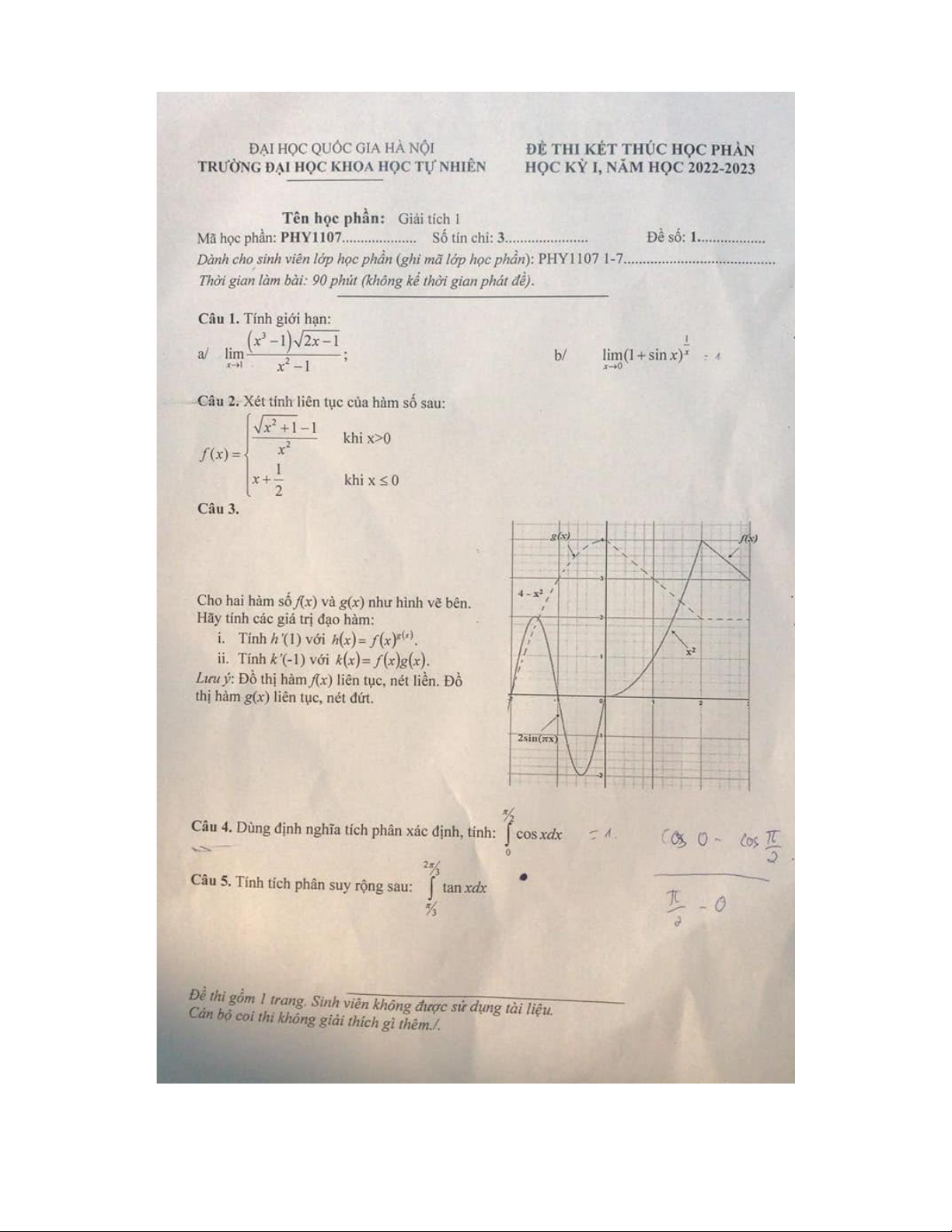 Đề thi hết môn học kì 1 Giải tích 1 năm học 2025-2026 - trường đại học Khoa học tự nhiên – Đại học quốc gia hà nội