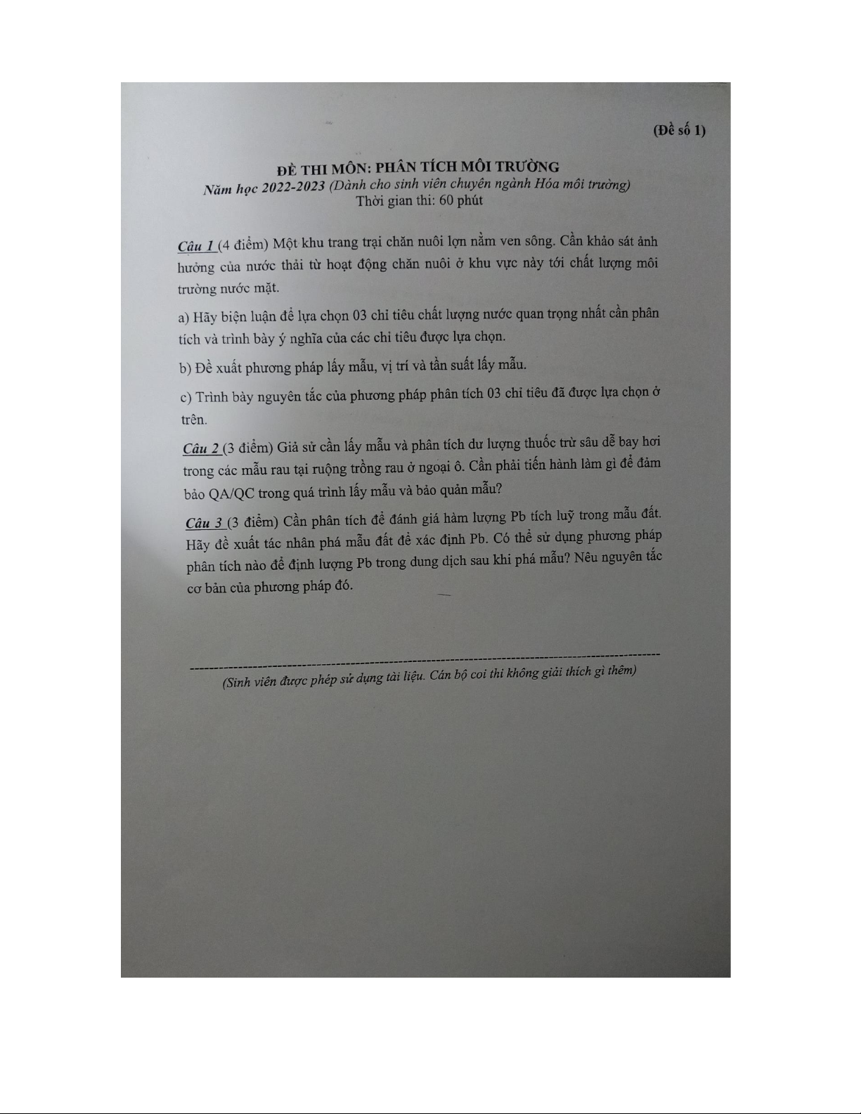 Đề thi hết môn học kì 1 Phân tích môi trường năm học 2025-2026 - trường đại học Khoa học tự nhiên – Đại học quốc gia hà nội.
