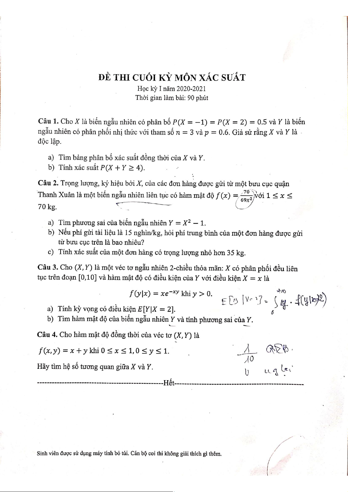 Đề thi hết môn học kì 1 Xác suất thống kê học năm học 2025-2026 - trường đại học Khoa học tự nhiên – Đại học quốc gia hà nội.
