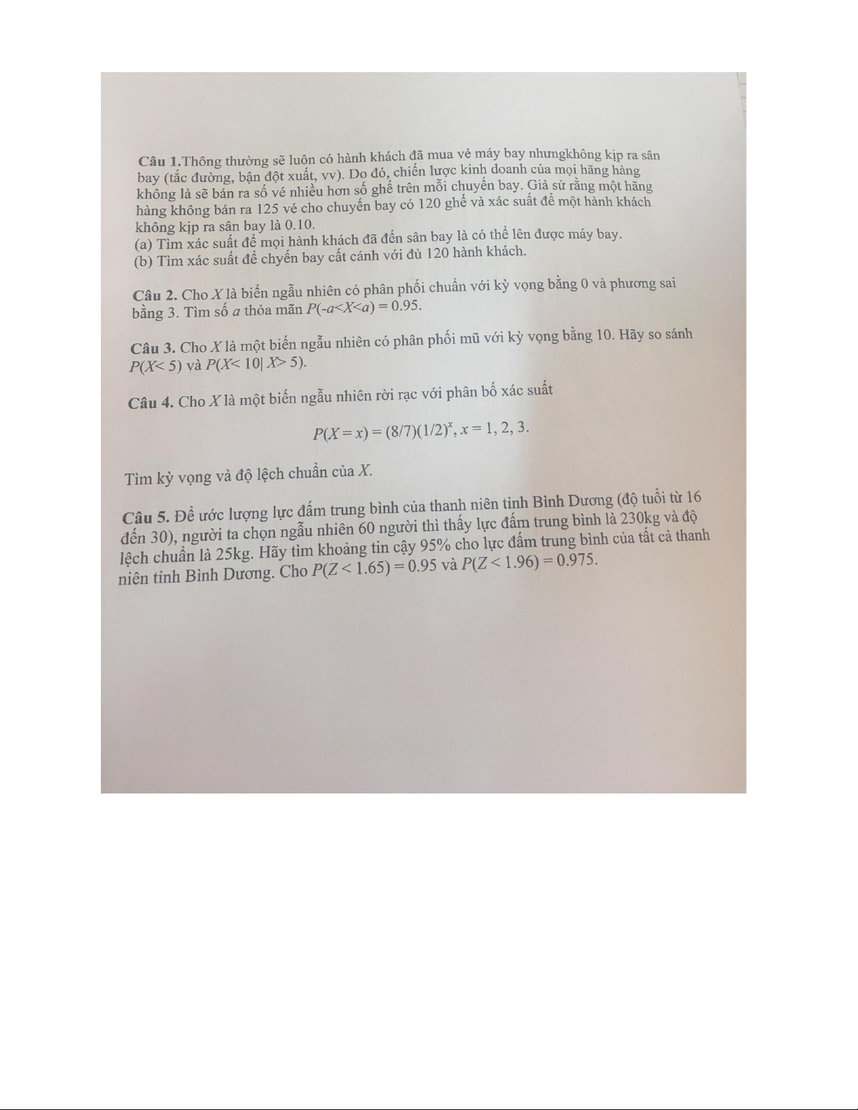 Đề thi hết môn học kì 1 Xác suất thống kê học năm học 2025-2026 - trường đại học Khoa học tự nhiên – Đại học quốc gia hà nội.