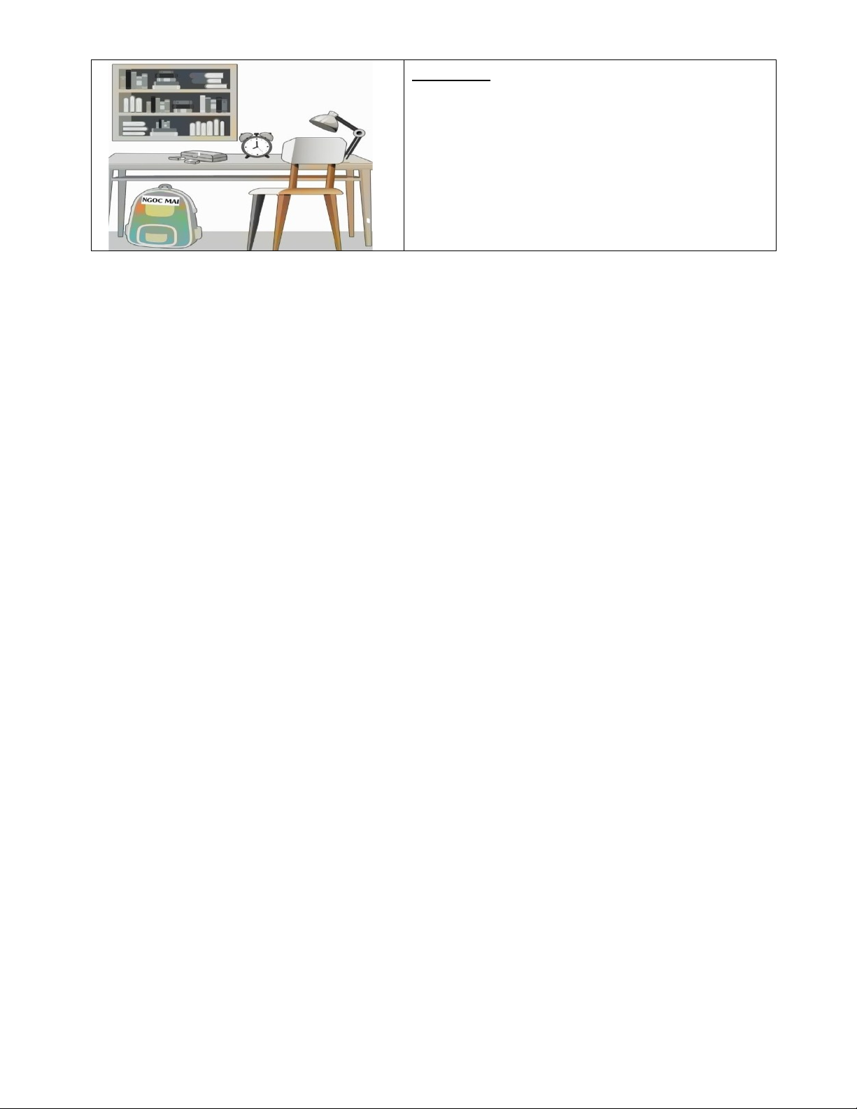 PART 1: Question 1- 5: Look at the picture and complete the sentences. There is one example. (1,25 pts)