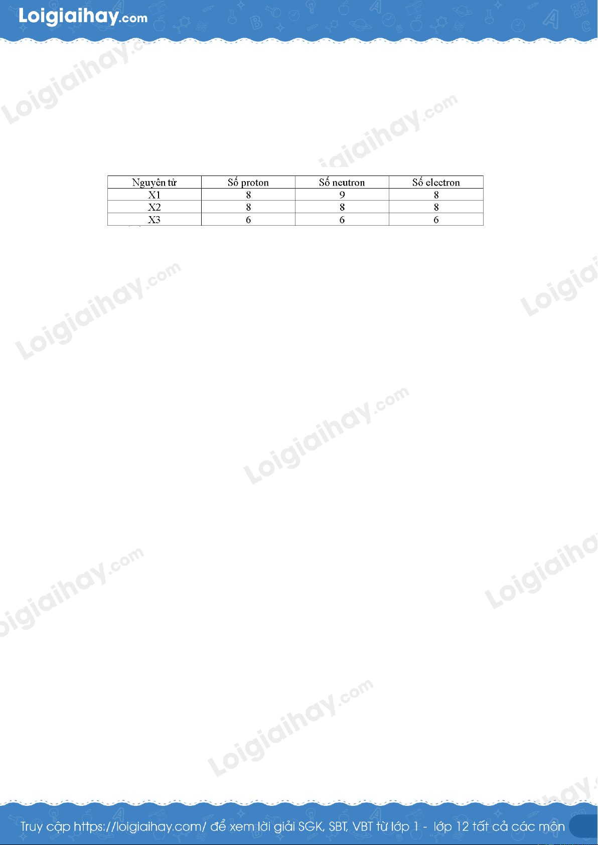 Câu 1: Nguyên tố hóa học là tập hợp những nguyên tử cùng loại có cùng số hạt nào trong hạt nhân?