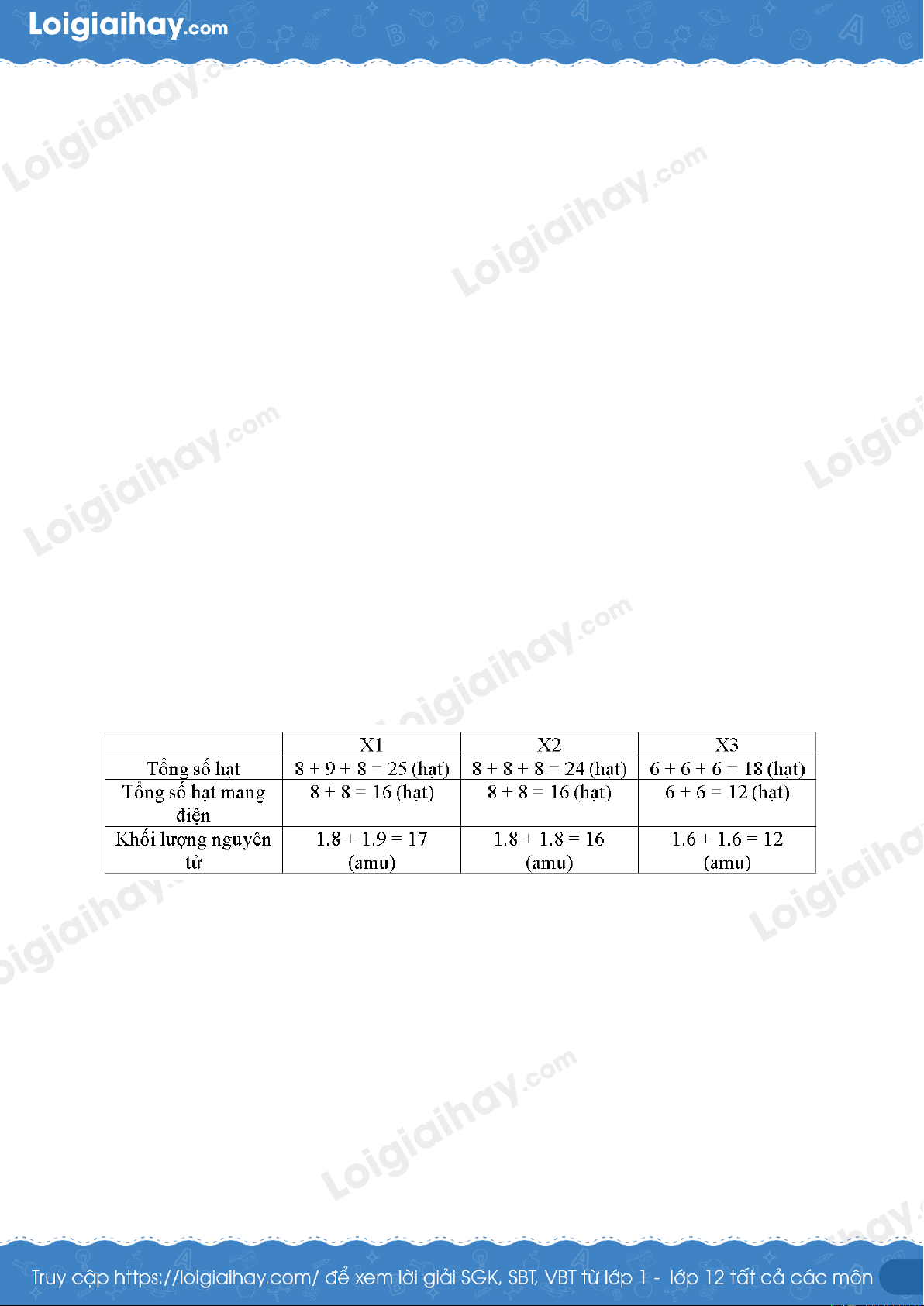 B. X1, X2, X3 có tổng số hạt mang điện lần lượt là: 17, 16, 12.