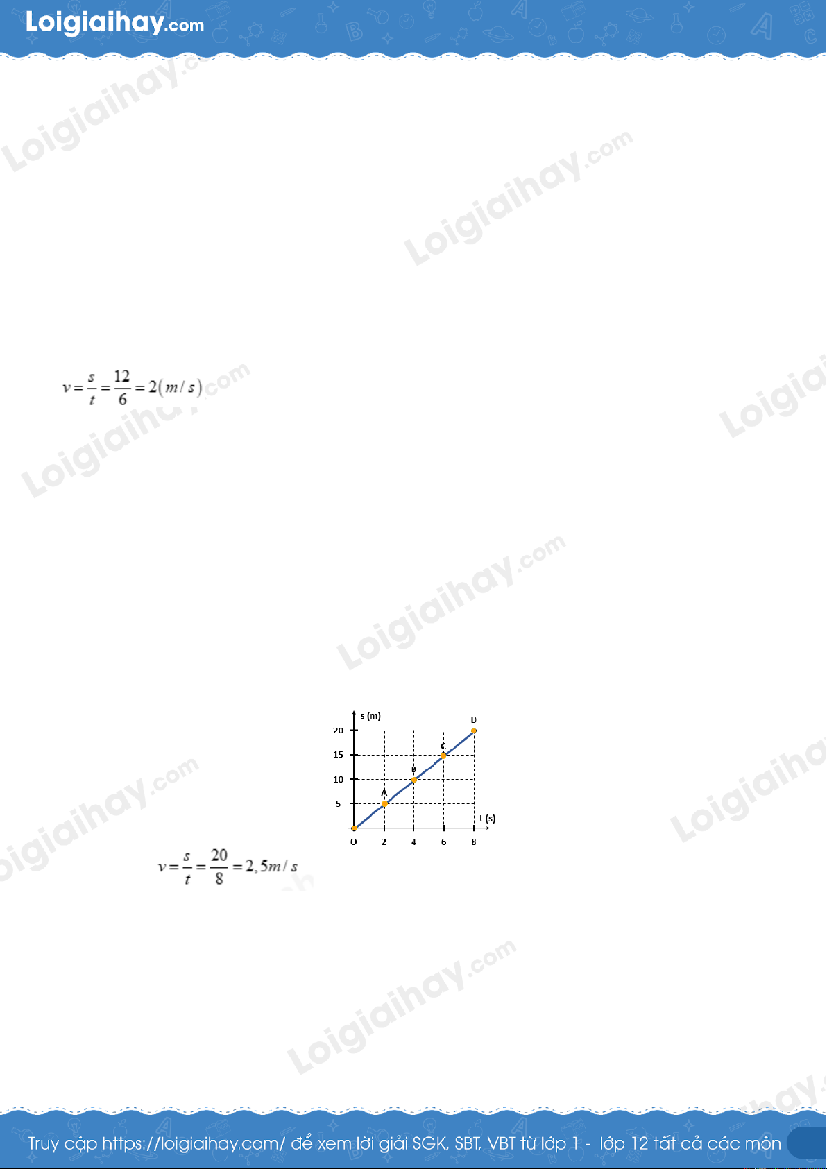 Công thức tính tốc độ: v = s/t Cách giải: