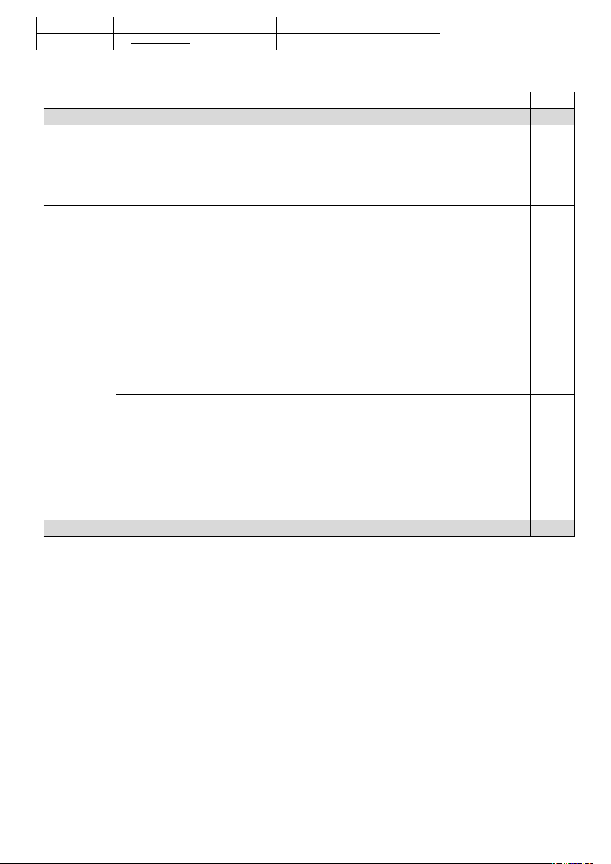 *Lưu ý: Khi chấm, GV không cho điểm hình thức riêng. Nếu bài làm trình bày cẩu thả, chữ quá xấu, sai từ 05 lỗi chính tả trở lên có thể trừ từ 0,25 đến 0,5 điểm. | |||||||||||||||||