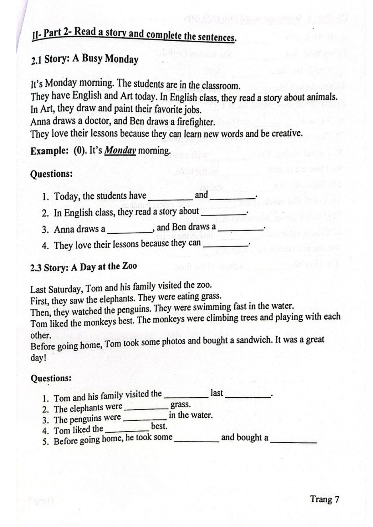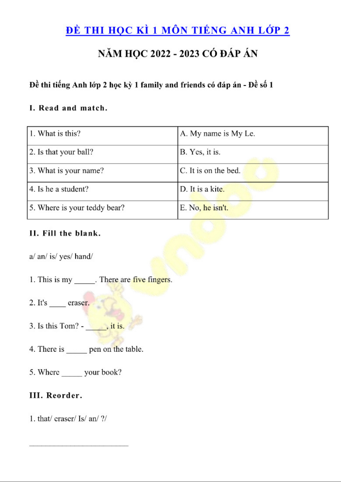 Đề thi học kỳ 1 môn tiếng Anh lớp 2 có đáp án chi tiết