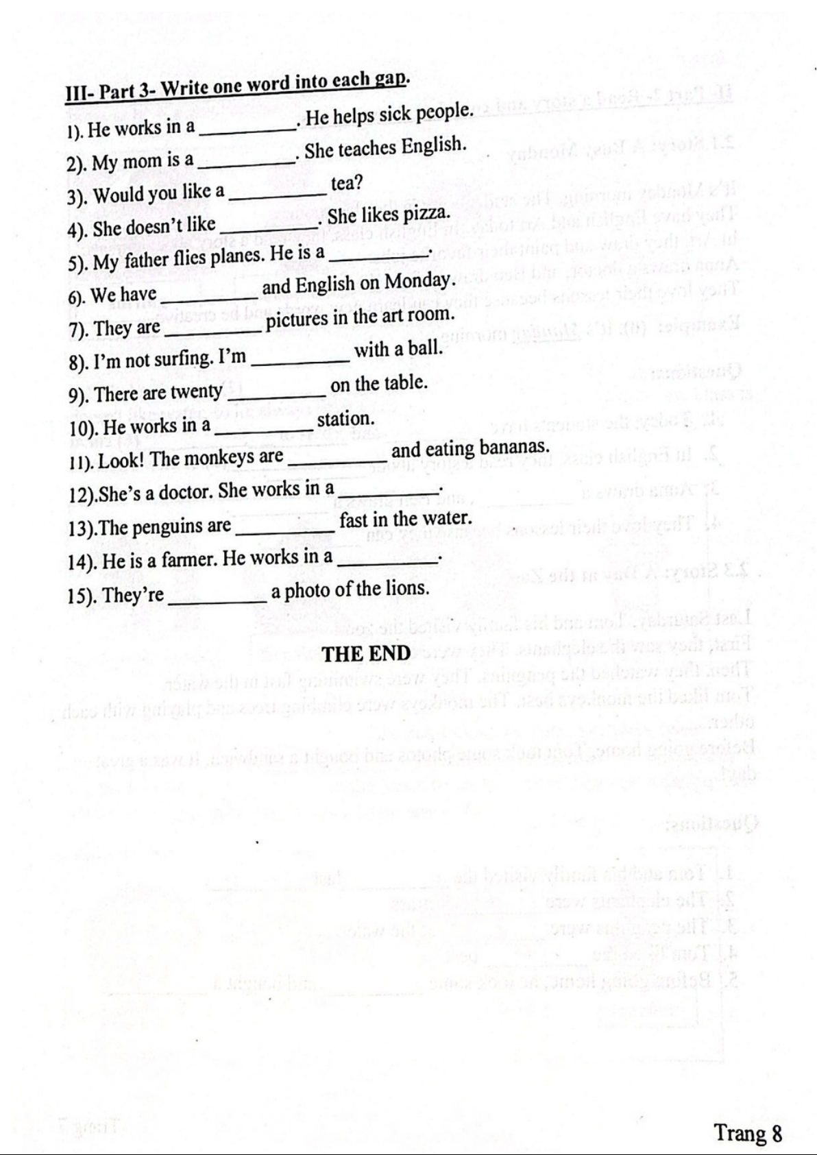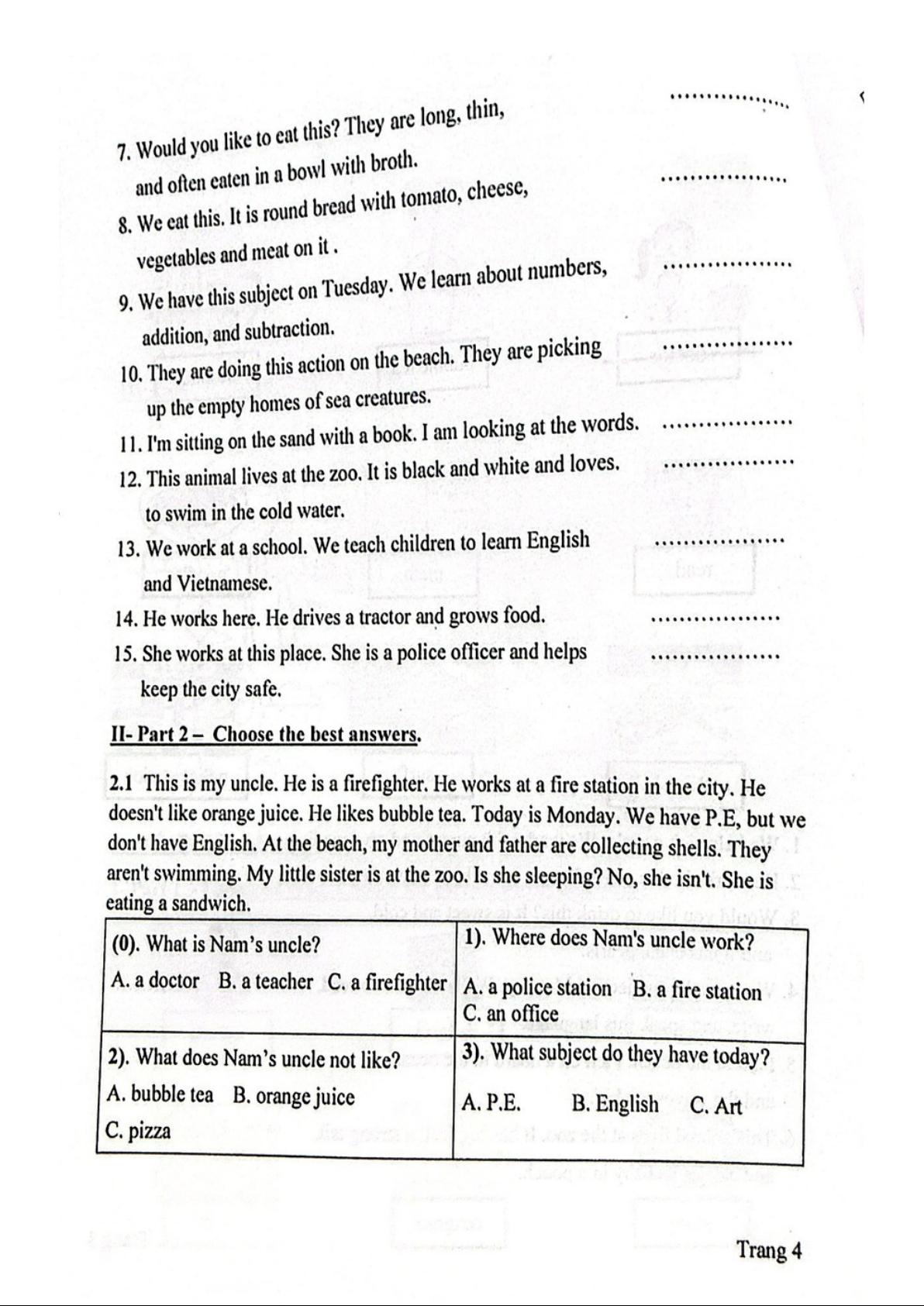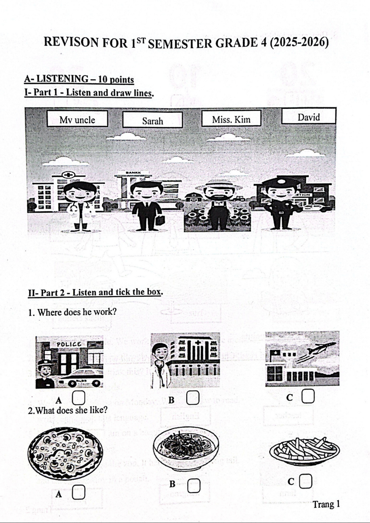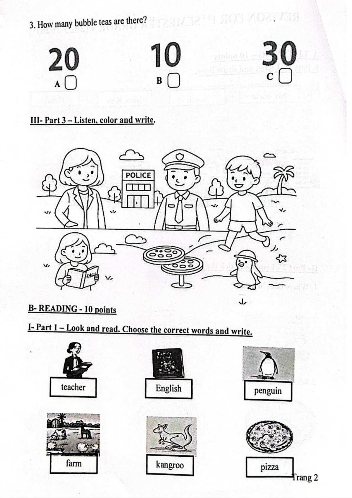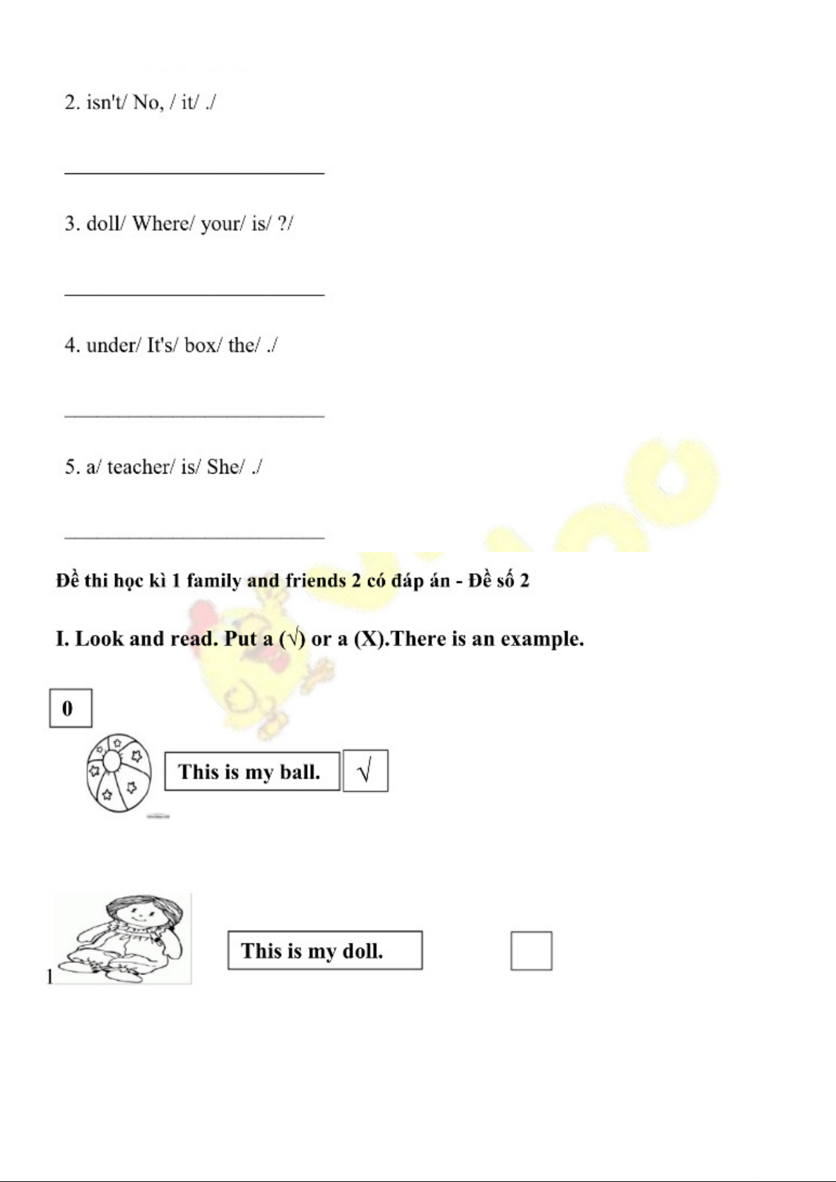 Đề thi HK1 Tiếng Anh lớp 2