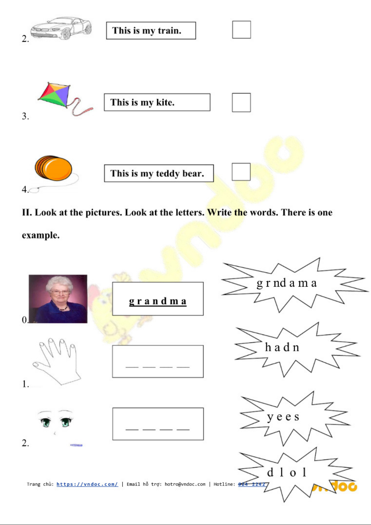 Đề thi HK1 Tiếng Anh lớp 2. Tài liệu được sưu tầm. Mời các bạn tham khảo