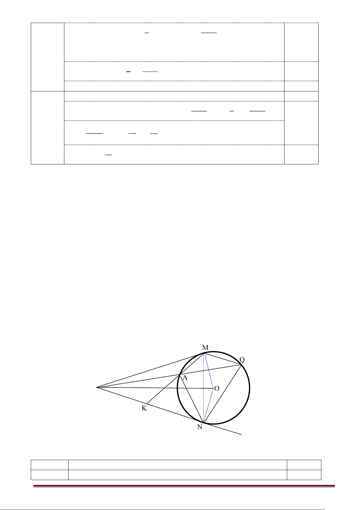 d) Tia MA cắt PN tại K. Chứng minh K là trung điểm của NP. M . Q . . A . . P O . K . N x Câu Hướng dẫn chấm Điểm