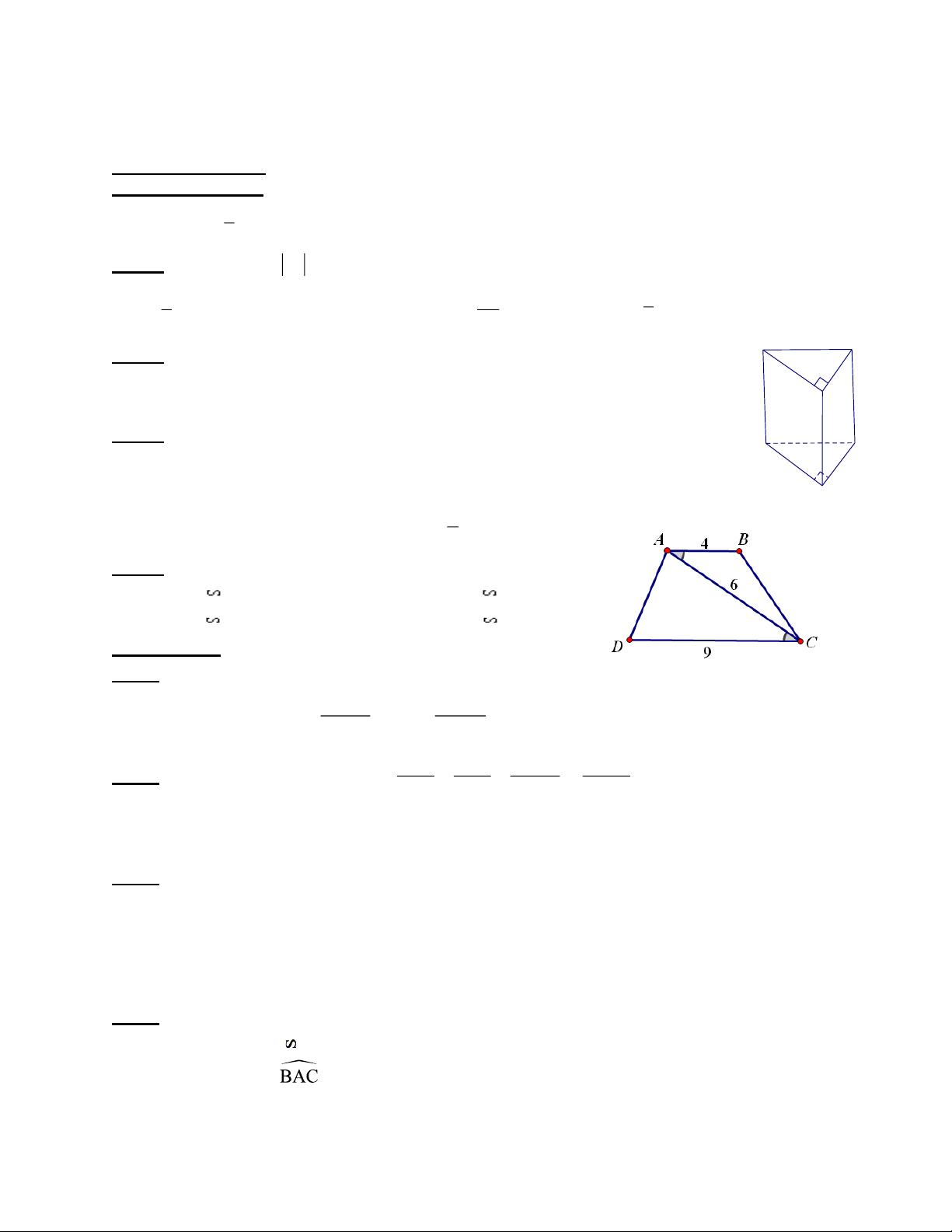 Câu 2 - B. 360 𝑐𝑚2 Câu 3 - C. x  −4 Câu 4 - C. ∆ ABC   ∆ CAD   3