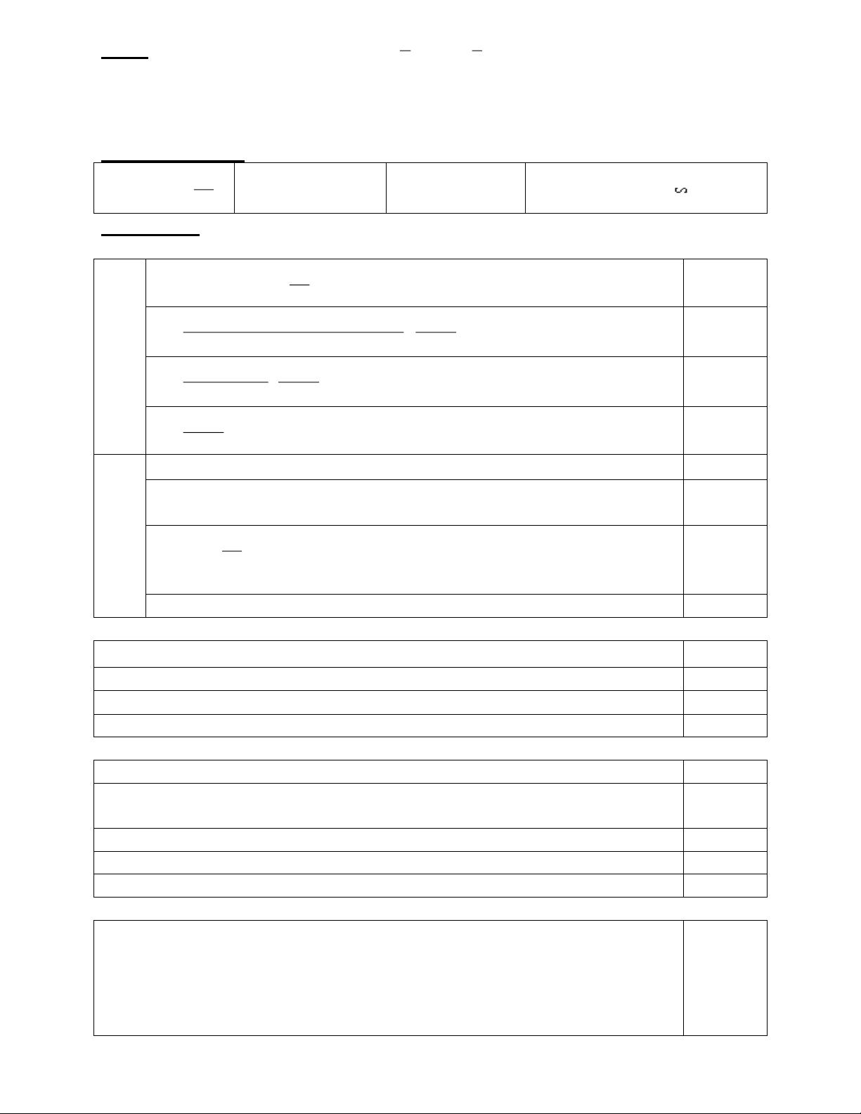 II. TỰ LUẬN (9 điểm)  Câu 1 (2 điểm)  −1 0,25 đ  ĐKXĐ: x   , 1 x    2 x(x − ) 1 − (x + )( 1 x + ) 1 + (7x − ) 3 4 0,25 đ  P =  :   (x − )( 1 x + ) 1 2x +1 a  4x − 4 2x +1 0,25 đ  P =     (x − )( 1 x + ) 1 4 2x +1 0,25 đ  P =    x +1  x(2x + ) 1 = 0  0,25 đ  TH1: x = 0  0,25 đ  ( tmđkxđ)  b  −1 0,25 đ  TH2: x =   2 (Không tmđkxđ)  P = 1  0,25 đ  Câu 2 (1 điểm)   ( 5 7x − ) 1 + 30 2 . x  16 ( 6 − x)  0,25 đ