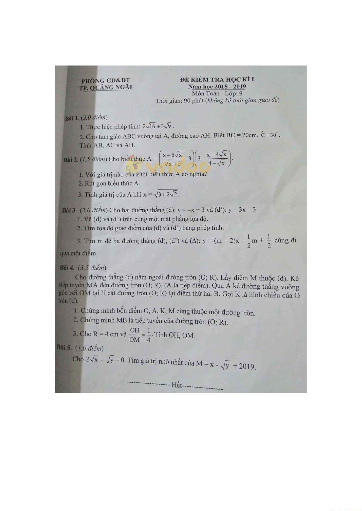 Đề thi học kì 1 lớp 9 môn Ngữ văn Phòng GD&ĐT TP Quảng Ngãi năm học 2018 - 2019