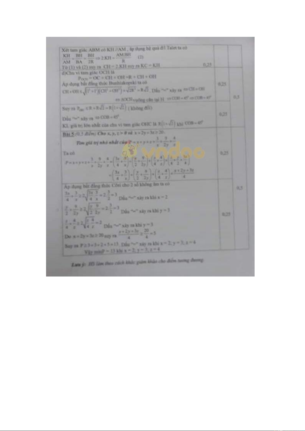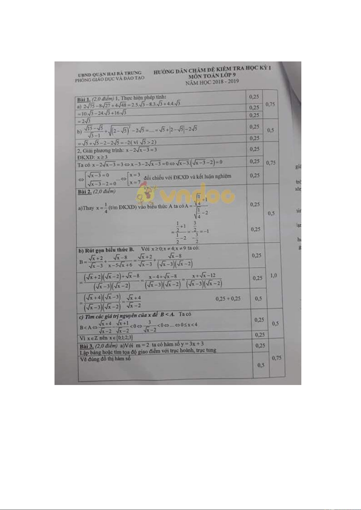 Đáp án đề thi học kì 1 lớp 9 môn Toán quận Hai Bà Trưng năm học 2018 - 2019
