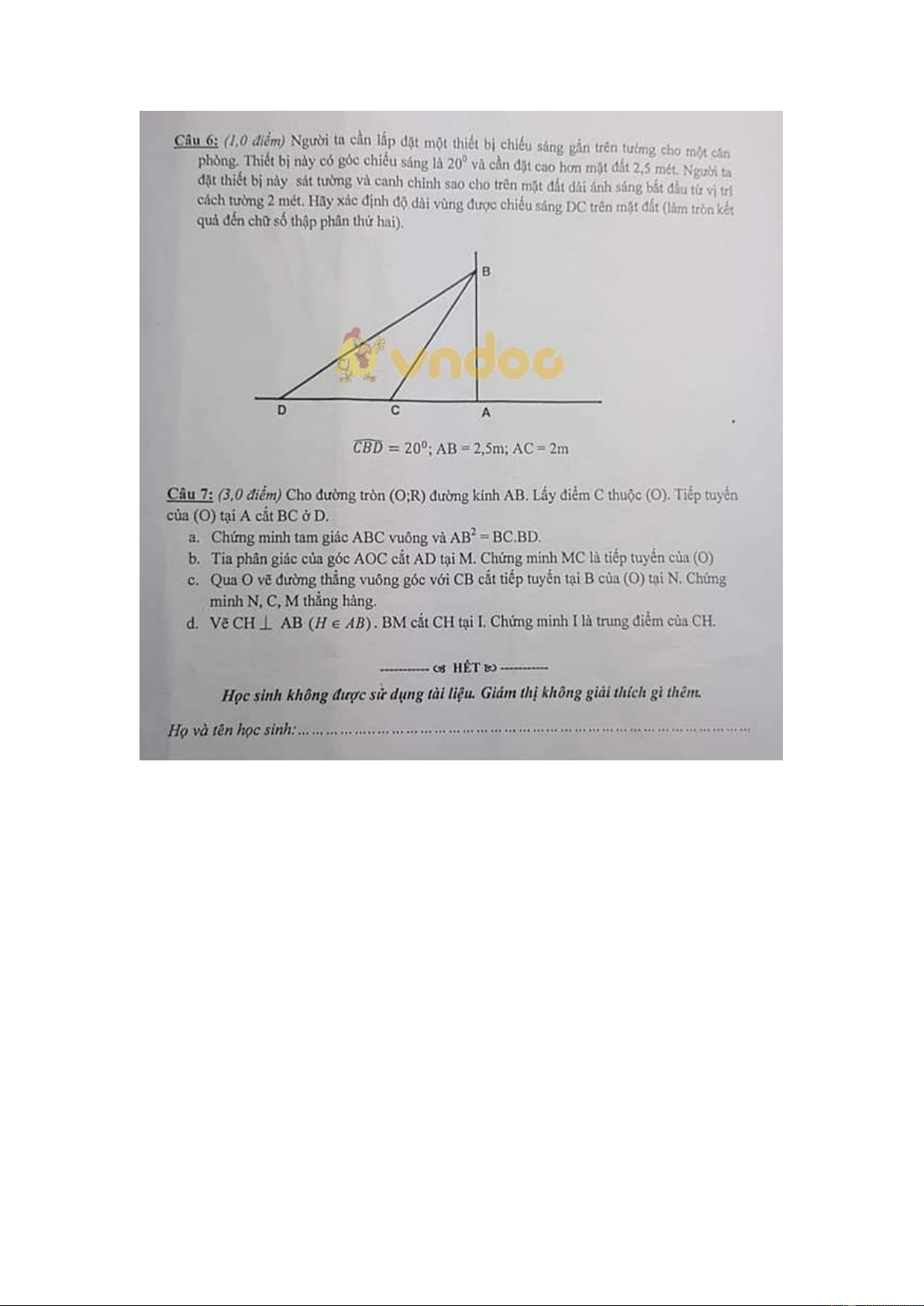 Đề kiểm tra học kì 1 toán 9 - Đề 2