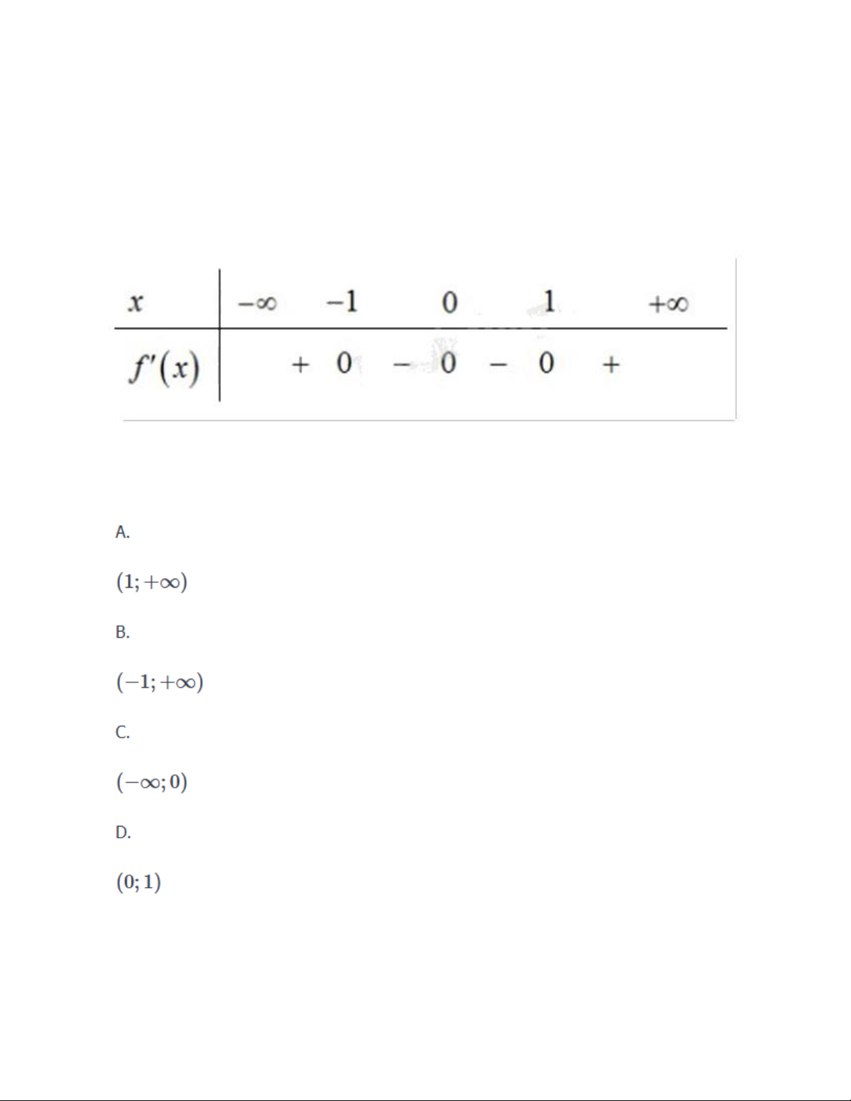 Hàm số f(x) nghịch biến trên khoảng nào dưới đây? • A. • B. • C. • D. Câu 2 :