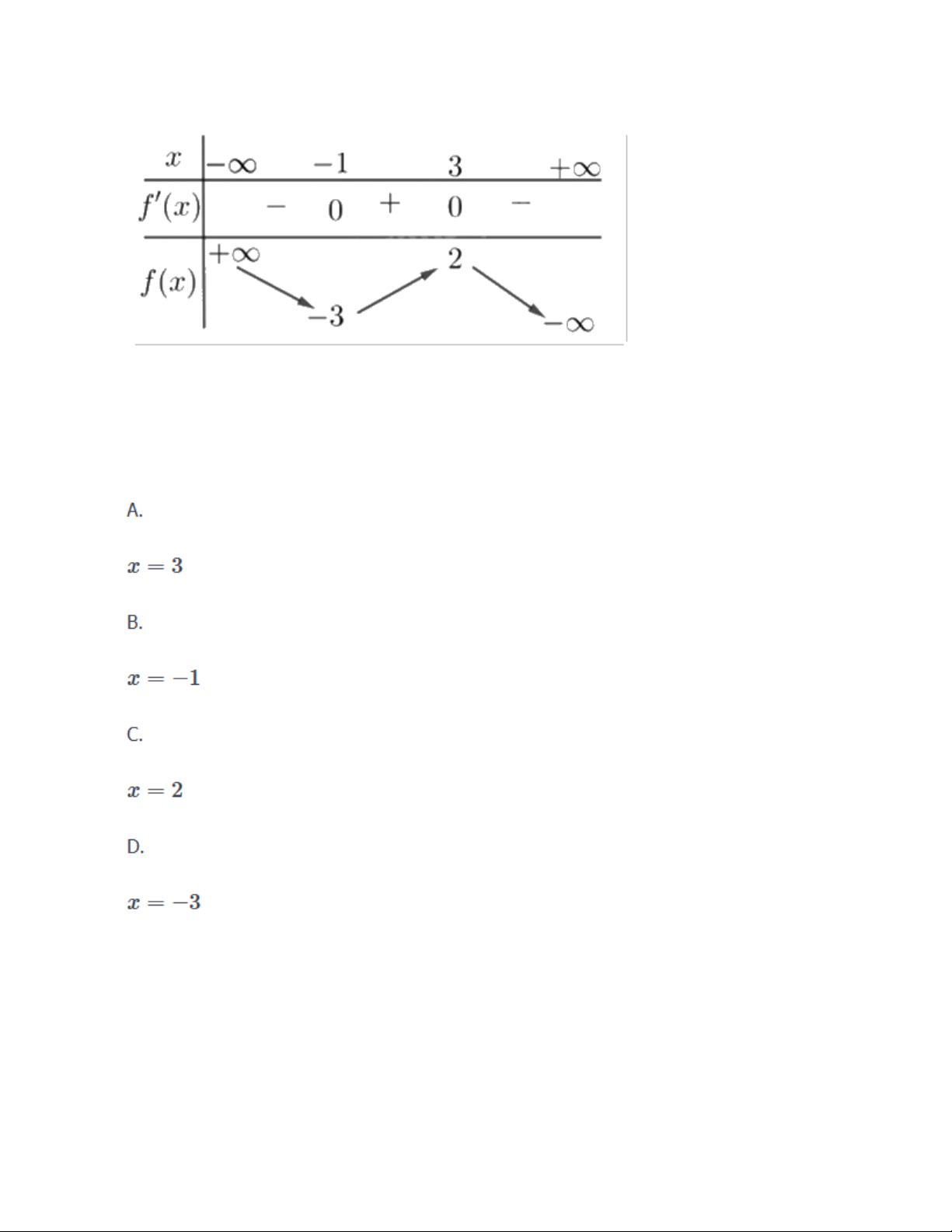 Điểm cực đại của hàm số đã cho là Câu 3 :