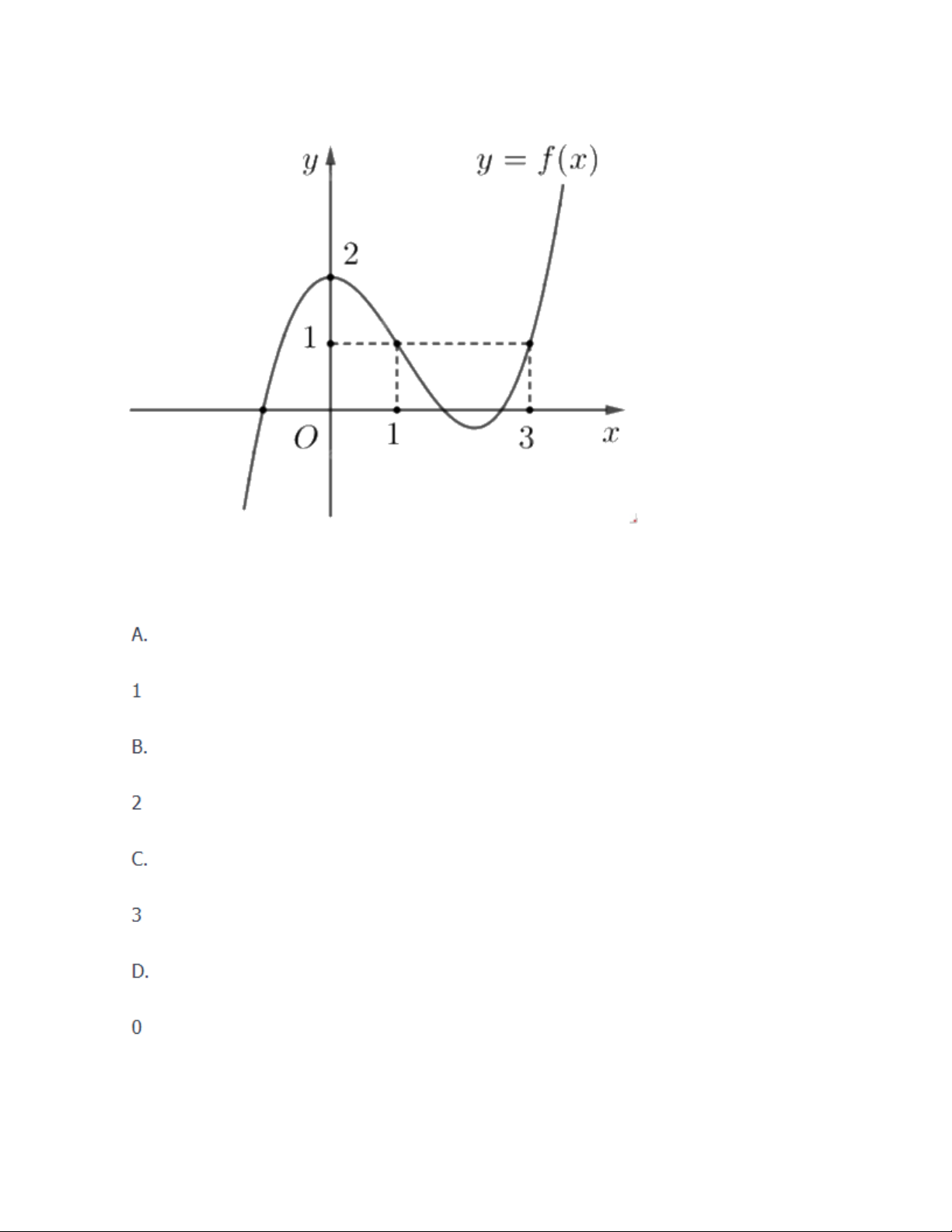 Giá trị lớn nhất của hàm số f(x) trên đoạn [0;3] là • A. 1 • B. 2 • C. 3 • D. 0 Câu 4 :