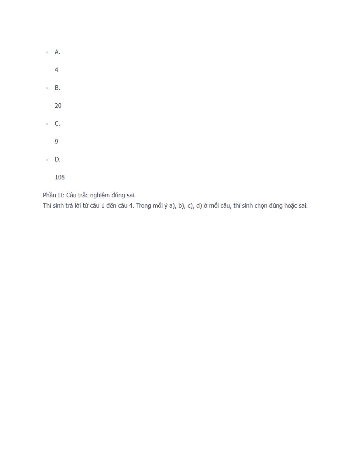 Phần II: Câu trắc nghiệm đúng sai.