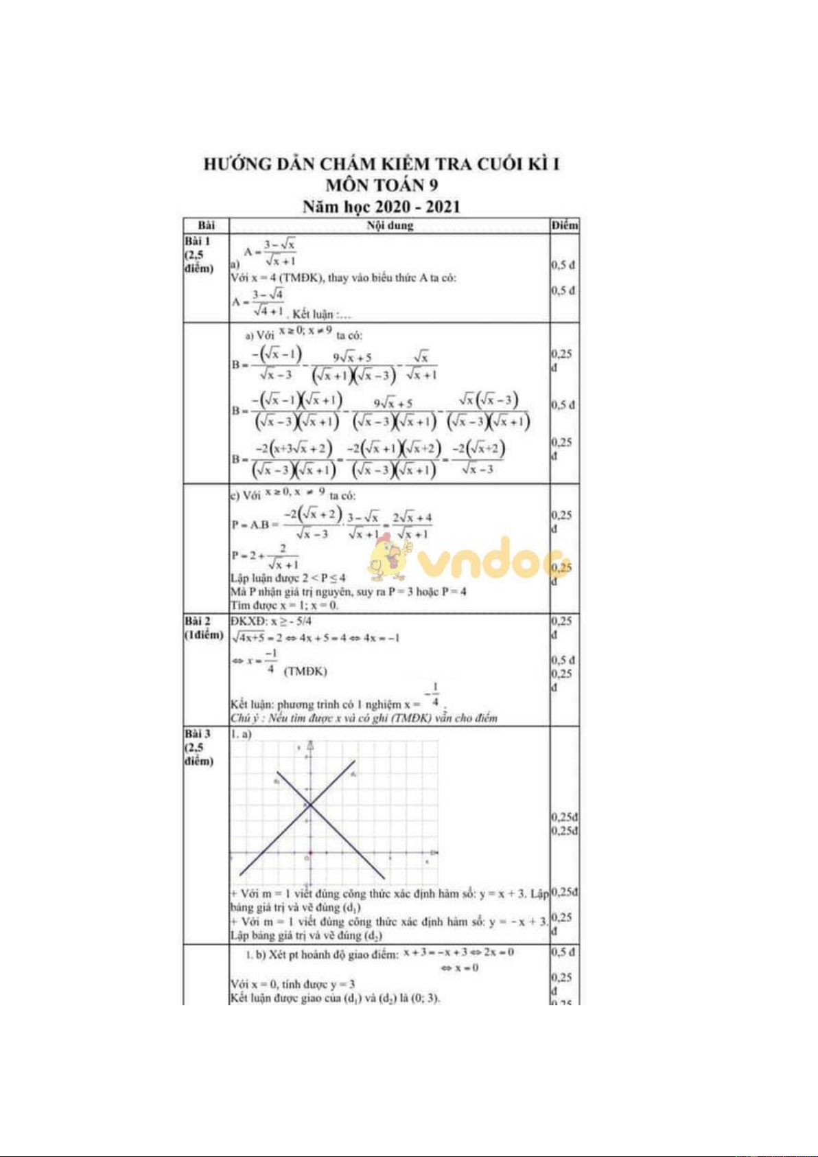 Đáp án đề thi học kì 1 Toán 9 Phòng GD&ĐT quận Hà Đông, Hà Nội năm 2020 - 2021
