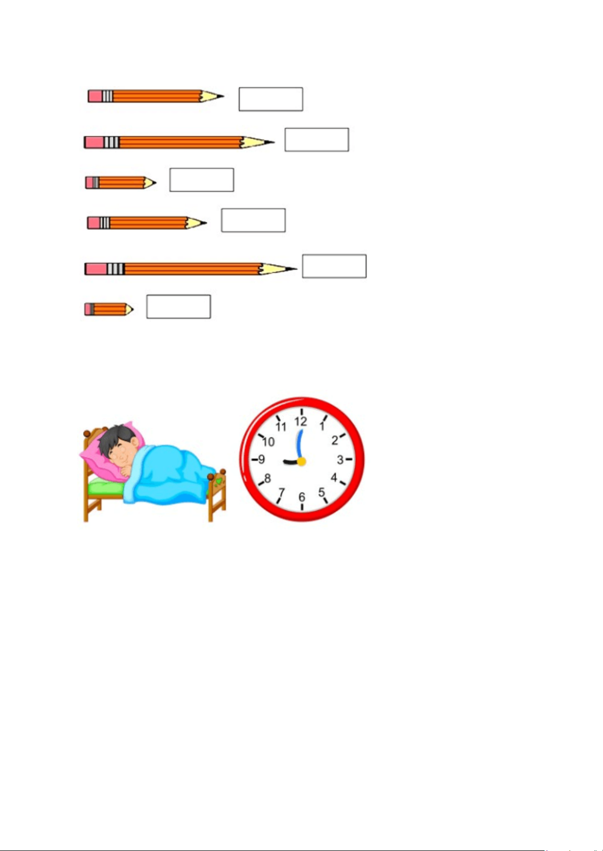 Câu 5 (1 điểm): Điền số từ 1 đến 6 vào các ô trống độ dài bút chì từ ngắn nhất tới dài nhất: