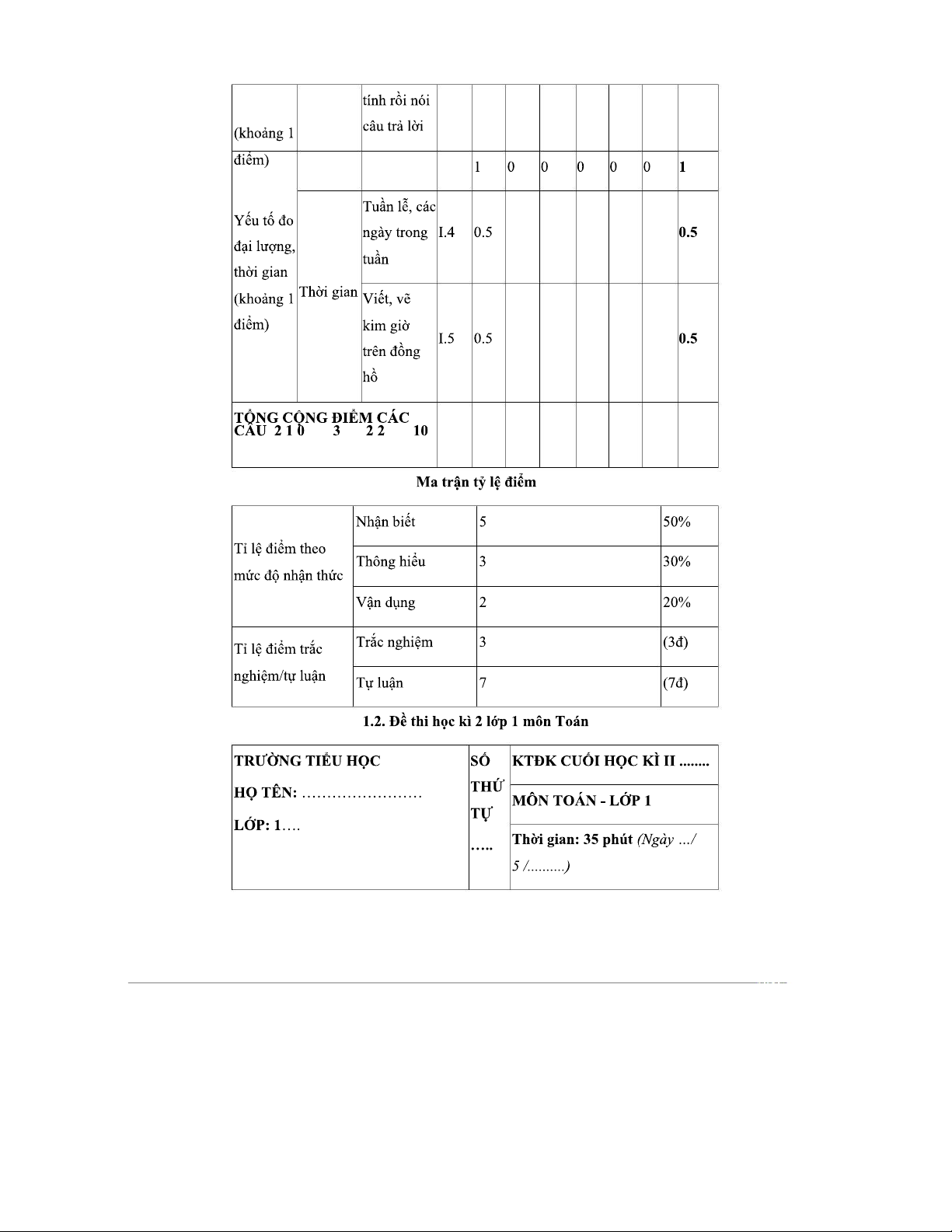 Bộ Đề Ôn Tập Toán 1 Cánh Diều HK2 Năm 2021-2022