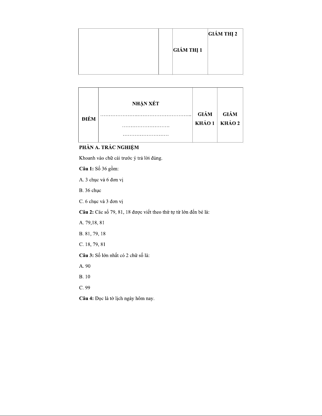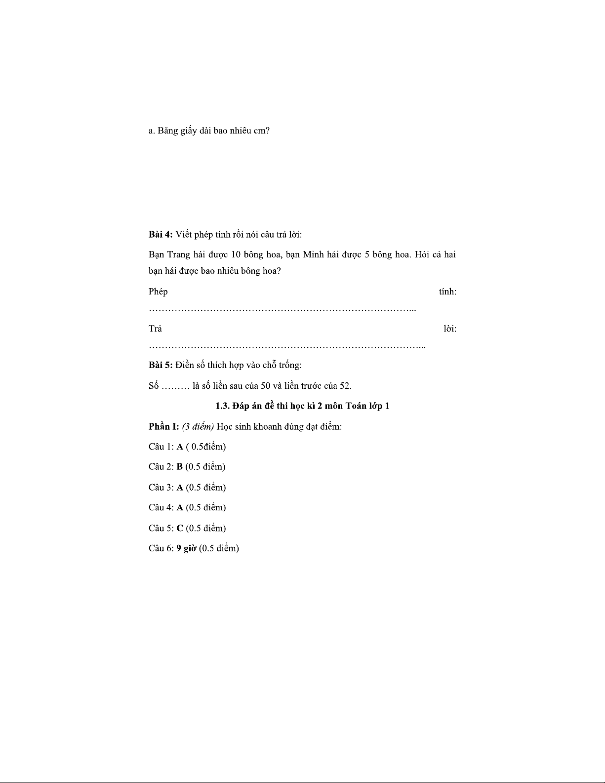 Đề thi học kì 2 môn Toán lớp 1 sách Cùng học để phát triển năng lực - Đề 4