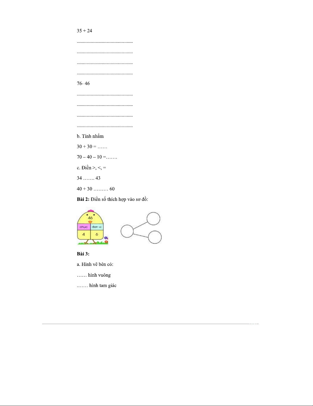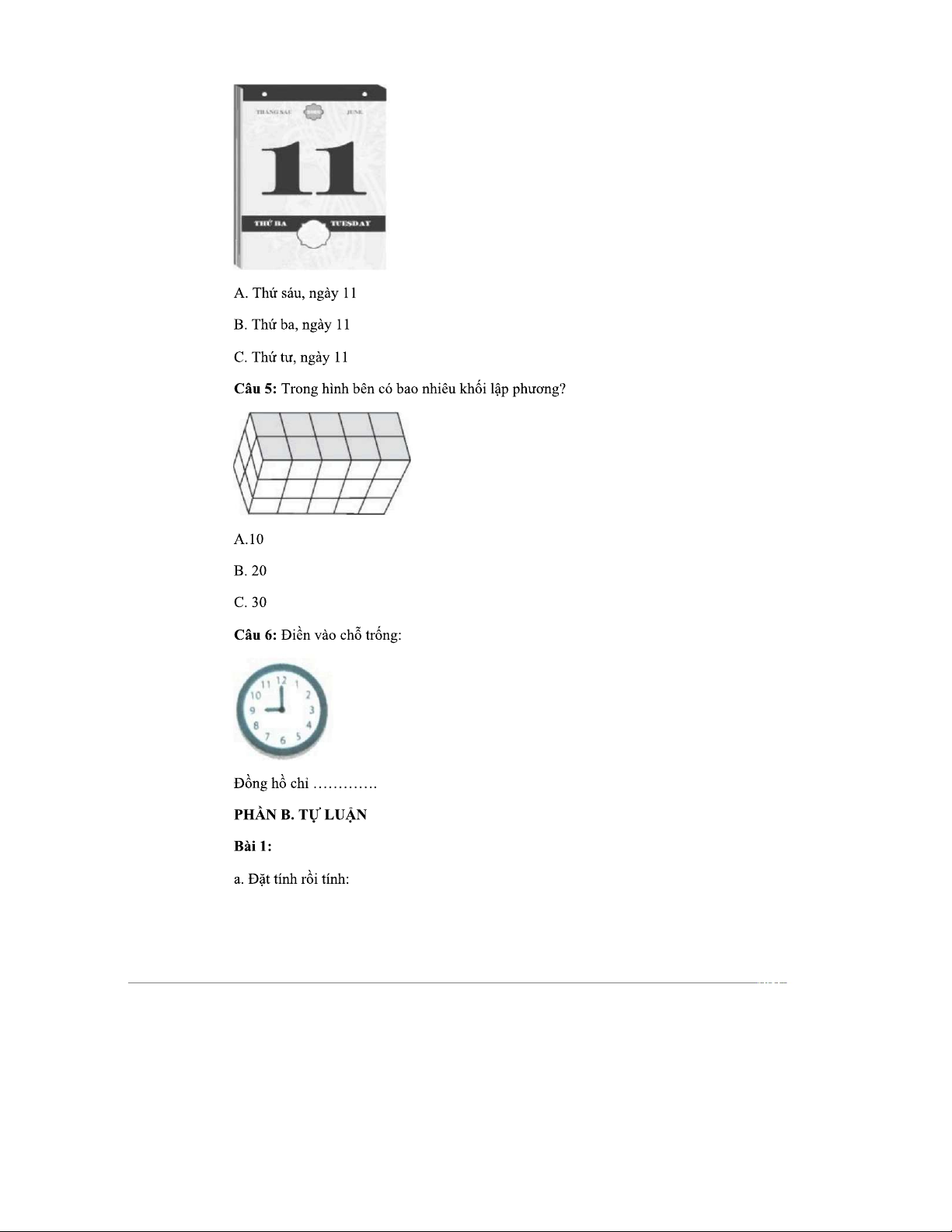 Đề thi học kì 2 môn Toán lớp 1 sách Cùng học để phát triển năng lực - Đề 3