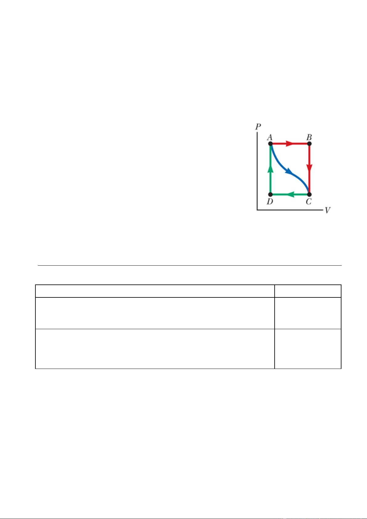 W AB =W ABC = -500J (do quá trình BC đẳng tích không sinh công) Mà: W . ΔV . ΔV . ΔV AB = – PA AB = –5.PC DC = 5.PC CD = -5 W CD 0,5 Do đó: W CD = 100J