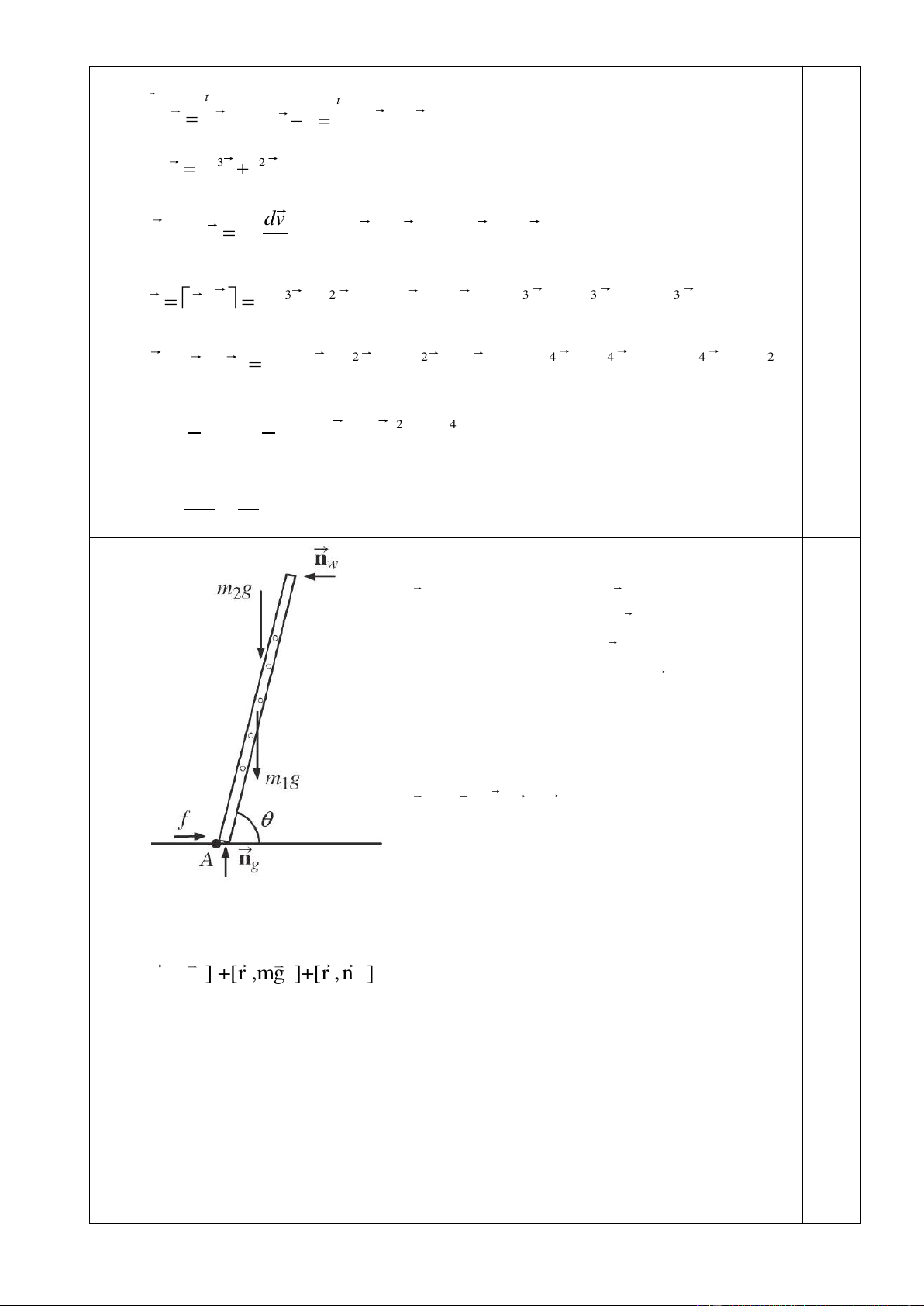 Tổng các mômen lực (mômen xoắn) đối với trục quay đi qua đế thang bằng 0: [r ,mg ] +[r ,mg ]+[r , n ]=0 1 1 2 2 3 w với r