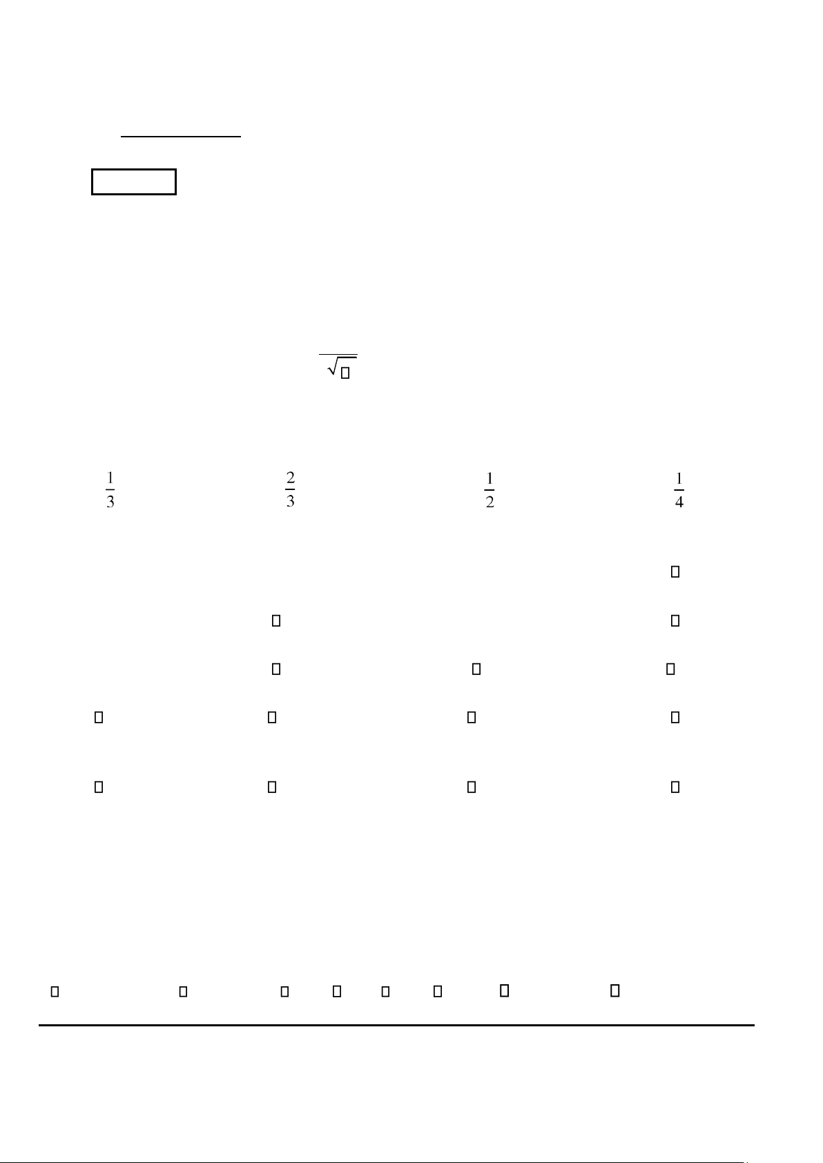 Câu 18. Khám ngẫu nhiên mỗi ịa phương một người. Xác suất có người không mắc bệnh M là: A. 0,12 B. 0,88 C. 0,42 D. 0,26