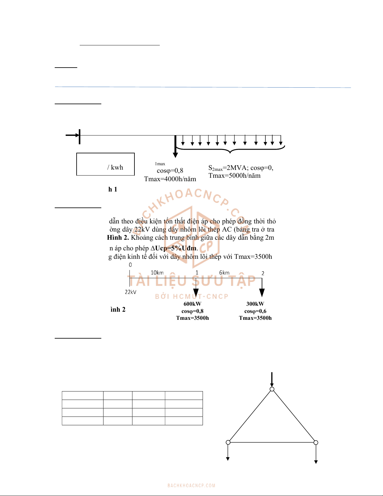 phụ tải theo sơ đồ Hình 2. Khoảng cách trung bình giữa các dây dẫn bằng 2m. Cho biết: