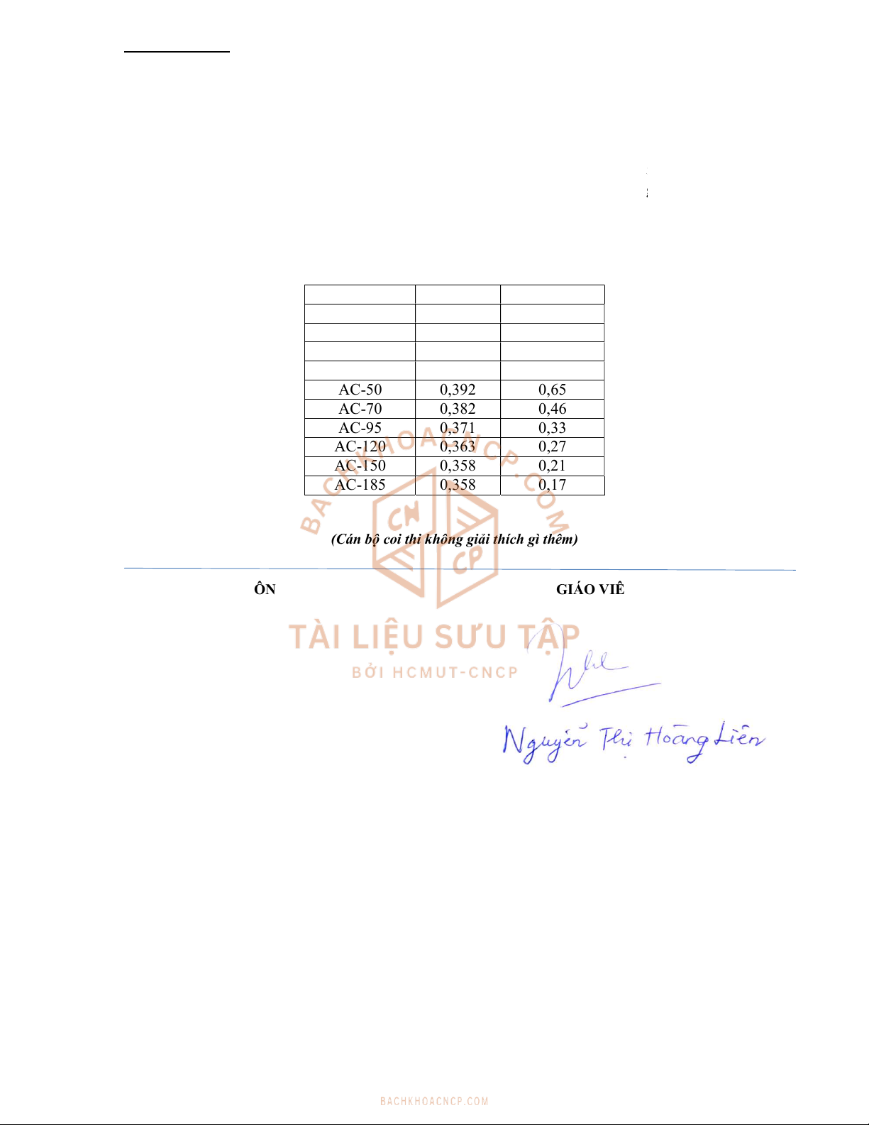 ố iđa Kt=0,7; tính Qbù để chống quá tải cho h o hai iMB M A bằng cách đặt tụ ụ b ù b ù t ạ t i it ha h n a h n h c ái á iph p í h a a t ải ả .i .Tí T n í h n h l ạ l i ic o c s o của tải sau bù ù và nêu kết tluậ u n n về tác c dụng g của tụ ụ bù. ù Bảng tra điện n trở r ở và v à cảm ả kh k á h ng dâ d y â nh n ô h m ô lõi ith t é h p p (AC A ) trê r n n khô h n ô g n vớ v i kho h ả o n ả g n cách h trung n bình n