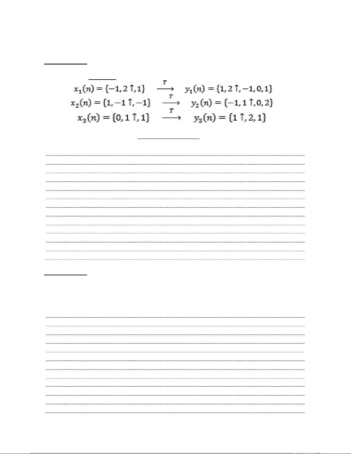 Một hệ thống T tuyn tính có các các cặp tín hiệu vào-ra như sau: